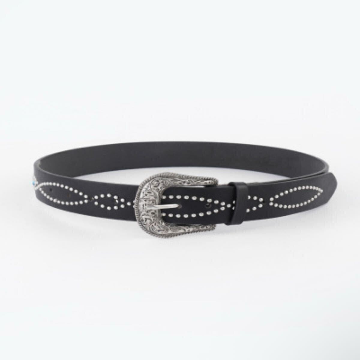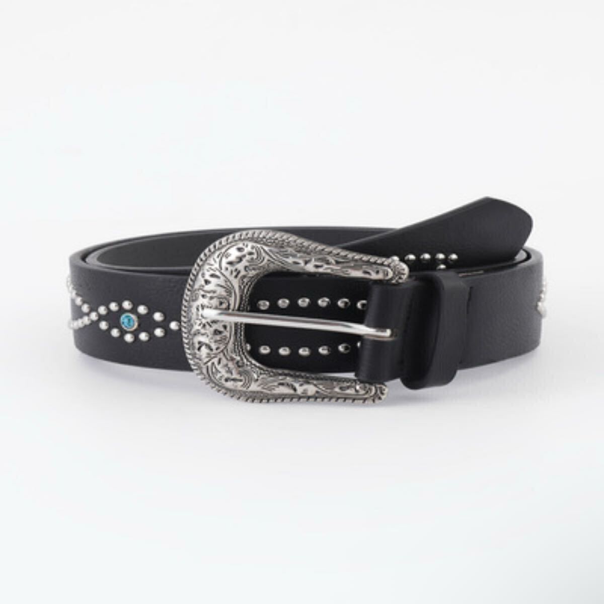ウエスタン調のビッグバックル×重厚スタッズで、無骨さと抜け感を両立した1本