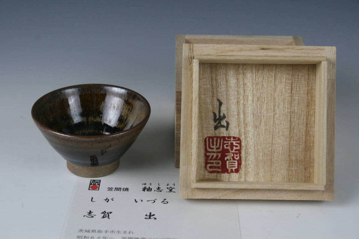 笠間焼若手作家、志賀 出 作 笠間焼 飴釉ぐい呑です。天目形の格調高いフォルムに、鉄飴釉薬を掛けています。見事な禾目窯変、笠間焼伝統工芸士 志賀 出 作の「飴釉ぐい呑」をぜひ、この機会にご愛蔵下さい。