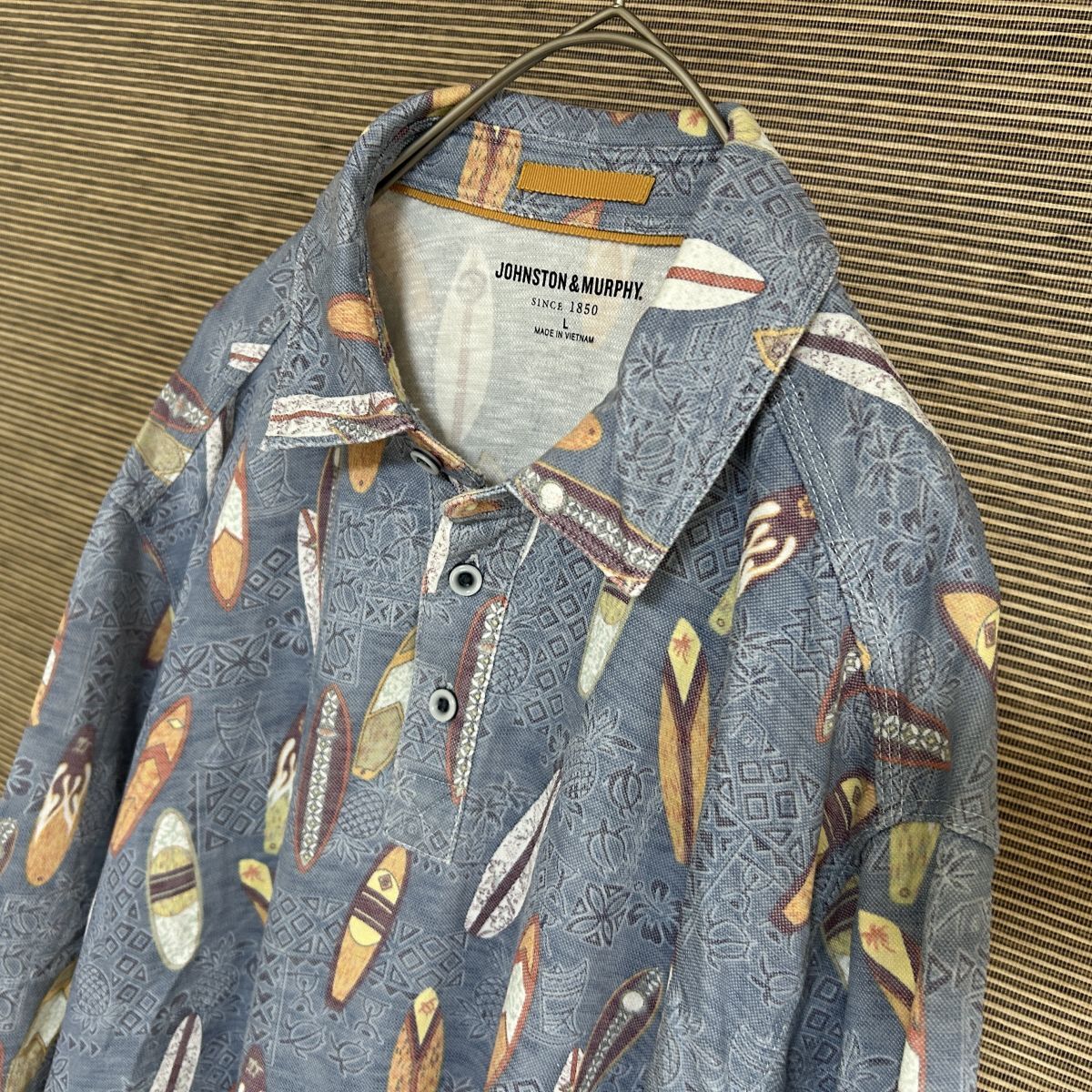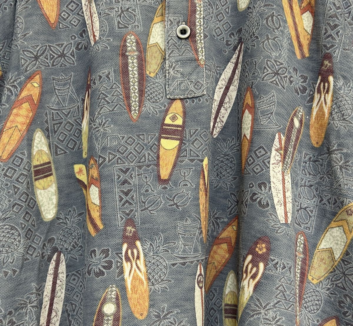 【サーフボード】半袖ポロシャツ 総柄 幾何学 ネイビー パイナップル*4 | |