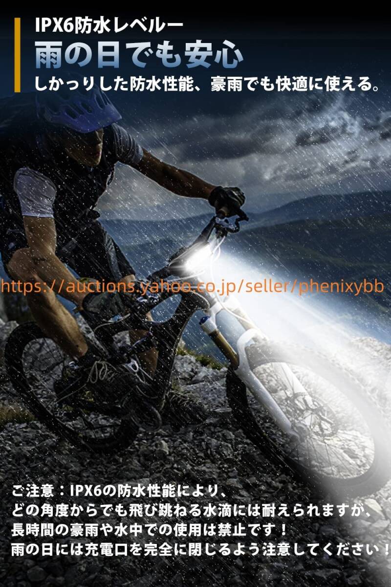 IPX6防水レベルーの自転車用ライト、豪雨でも問}ない防水規格であり、悪天気にあっても楽に使えます。