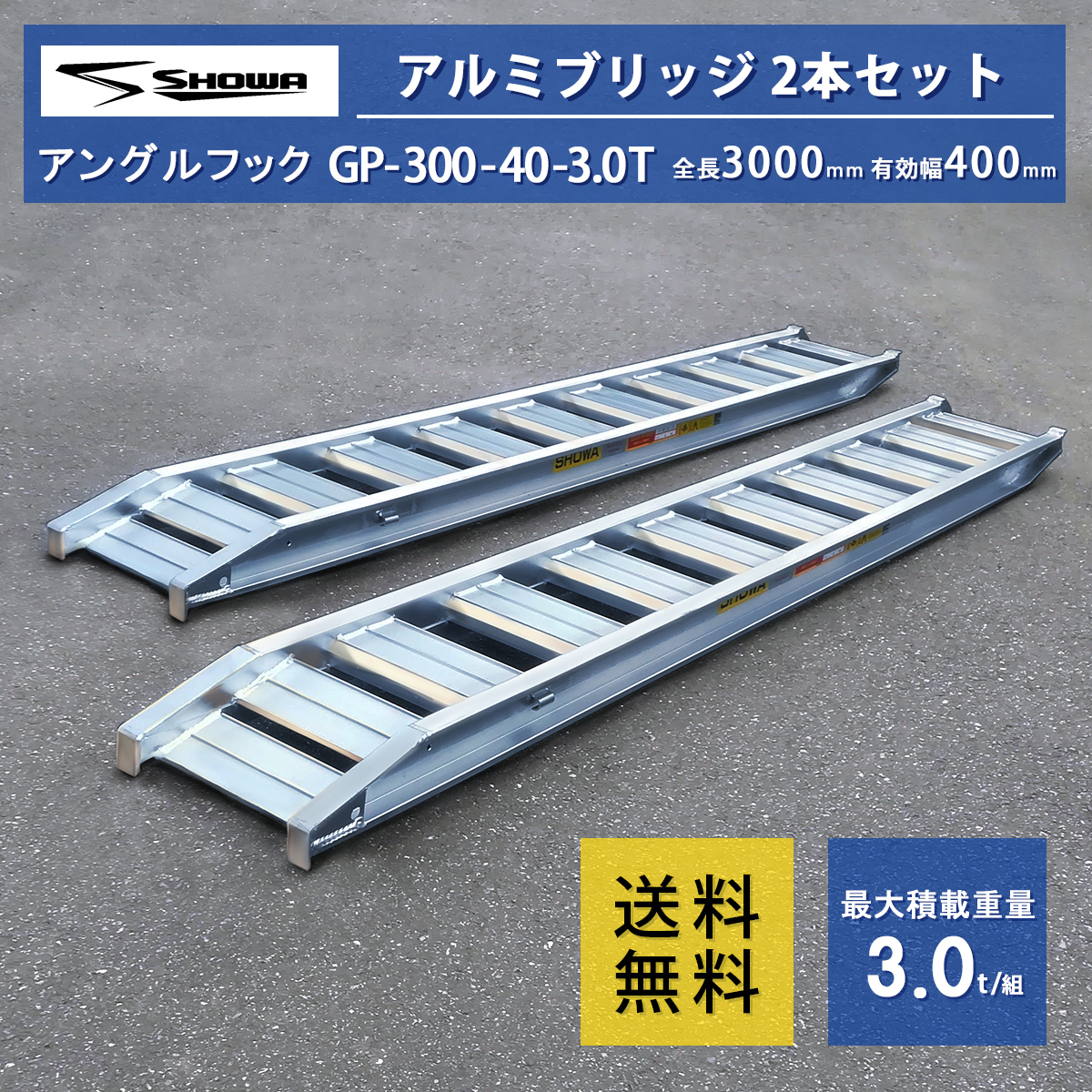 積載重量は1本あたり1.5トンです 昭和ブリッジ 3.0トン(3.0t)ツメ式 全長3000mm/有効幅400mm【GP-300-40-3.0T】2本組 全幅494mm自重31kg/1本 |