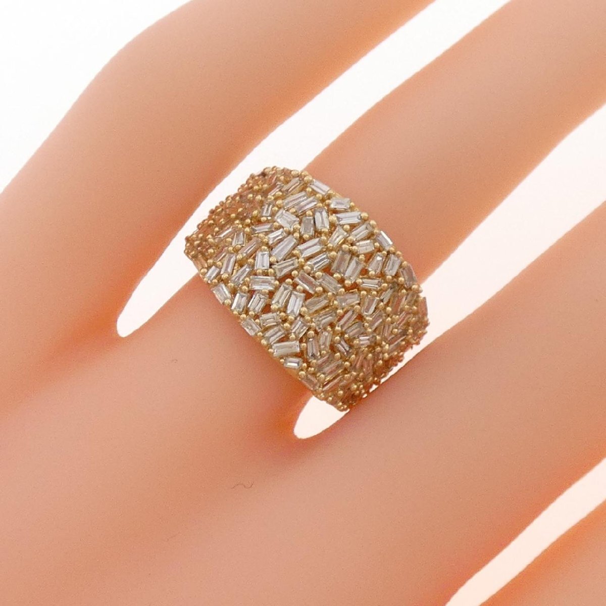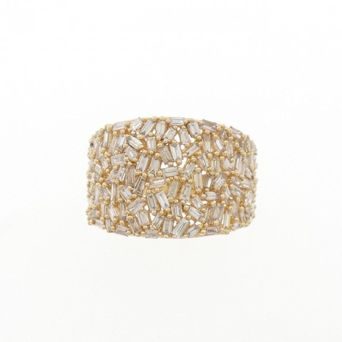 キラキラと細かく輝くダイヤモンドをセッティング。 光沢のあるイエローゴールドと共に上品な指元に仕上げます。