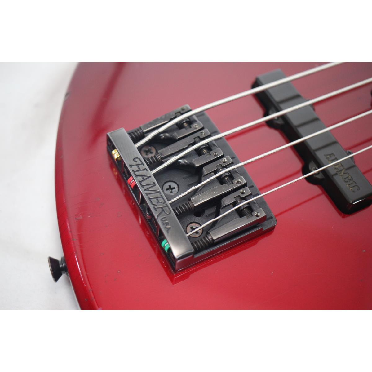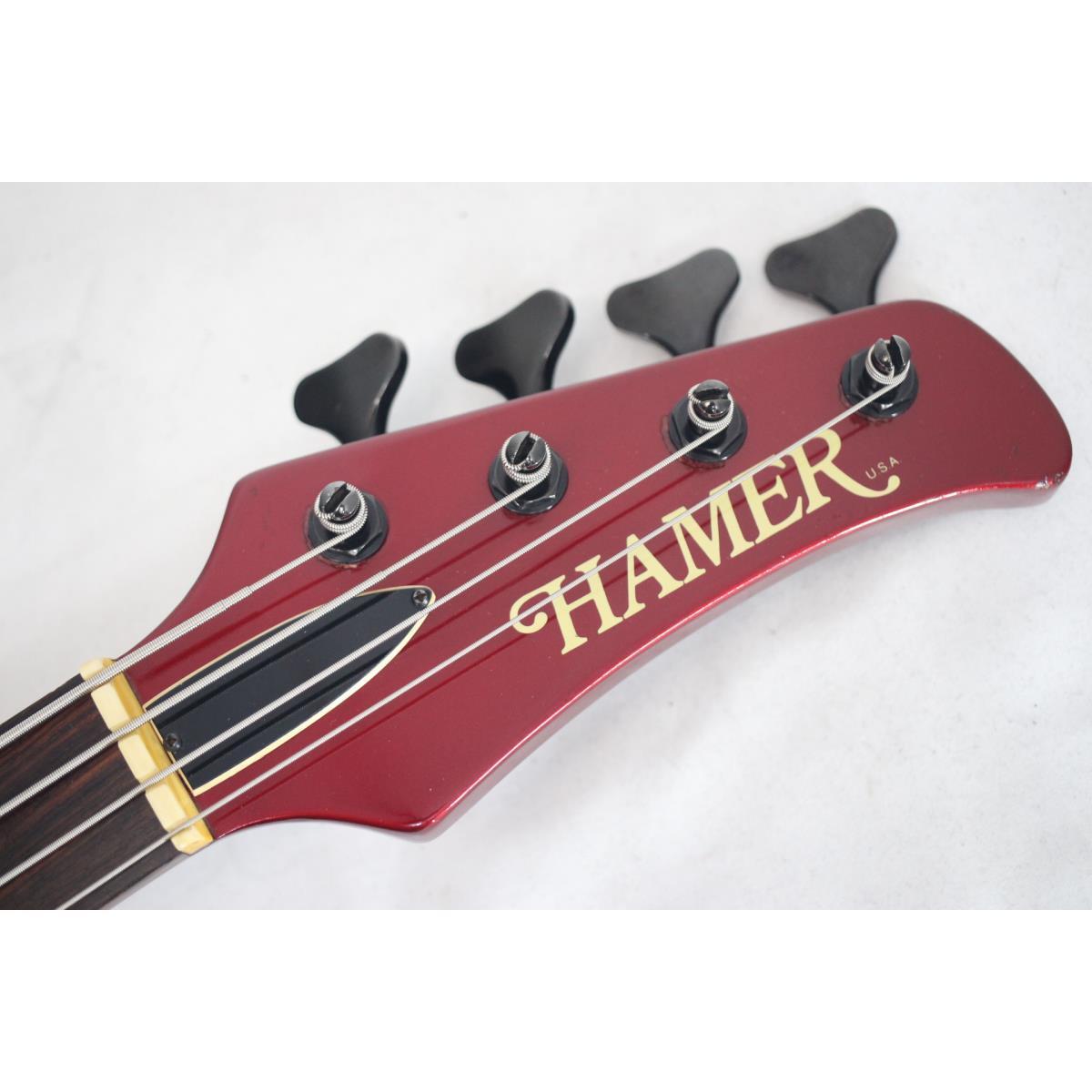 1986年製(シリアルより)今となっては非常に希少な存在、USA製HAMERが入荷しました!ギブソンの変形ギターの改造から始まり、多くのハードロッカーを虜にしたHAMER。1988年のカマンミュージックによる買収、2009年のカマンのフェンダーによる買収を経て、今はアジア製の廉価なモデルばかりとなっていますが、当時はUSA製のハイクオリティなギターとして、知らない人はいないであろう知名度を誇ったブランドです。初めて12弦ベースを製作したのもHAMERと言われています。本器は看板ベースモデルの『クルーズ』。ギブソンを踏襲したマホガニーボディのセットネック仕様に、フェンダー的な要素もプラスしたオリジナルモデル。同じく80年代を代表するALEMBICのPJピックアップを搭載しており、あの頃のロックサウンドがそのままアウトプットされます。少しはじいただけでしっかりと続くサスティン、しっかりとネック・ボディに来る鳴り、素晴らしいベースとは何なのかを体現した、最高な一本をお試しください。