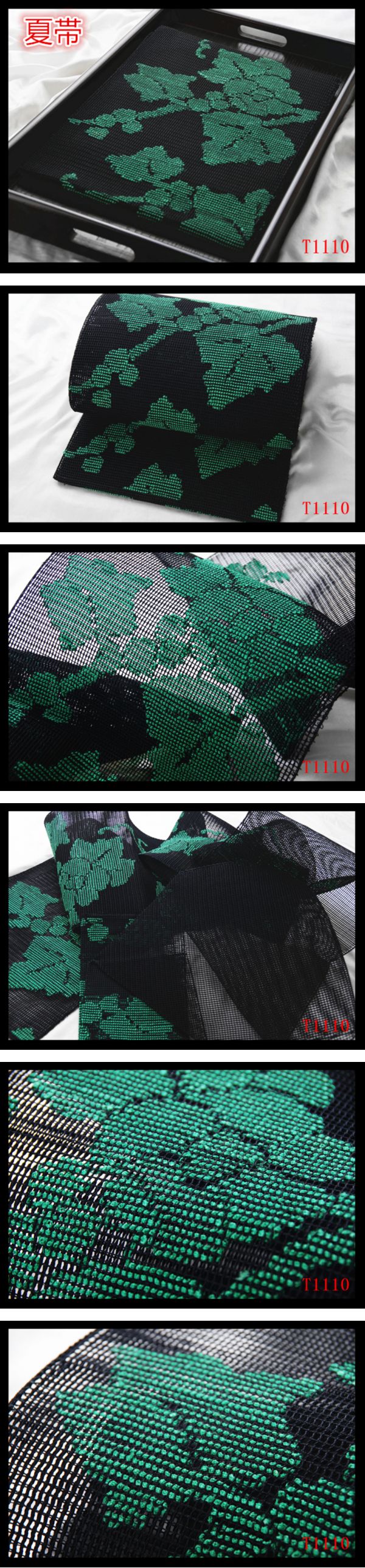 蔵【T1110】厳選逸品 夏帯 羅 黒色地常磐緑色 透かし 気品豊かに 高級美術名古屋帯 新品同様 ◇検簪着物袋帯和装小物帯締め