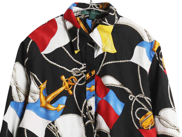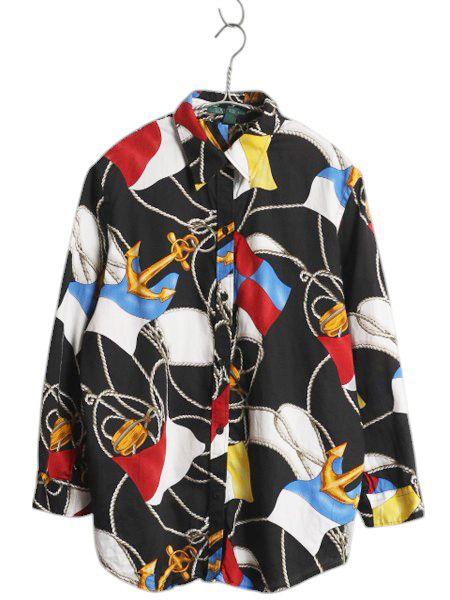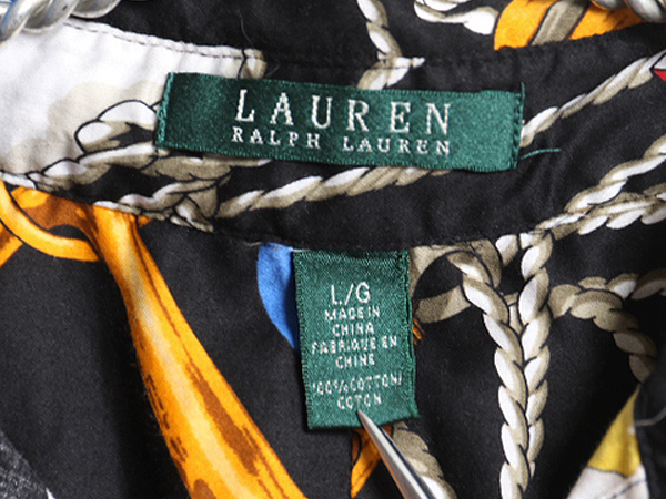 | 商品名 | 00s ローレン ラルフローレン 総柄 七分袖 シャツ L / オールド ポロ コットン ブラウス ドレス 七分丈 きれいめ カジュアル 薄手 ブラック |