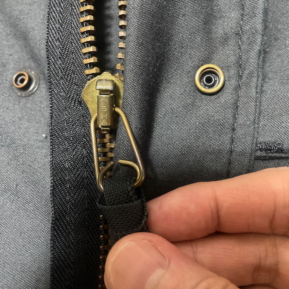 グレーライナーやアルミジップの初代、二代目が人気の様ですが真鍮のジップを採用して現場でサビなどによるジップの固着がなくなる様にアップデートされたサード以降が個人的には最高スペックだと思います。エポレットも手袋をそこに突っ込んで素手の作業ができる様にという配慮です。このあたりの世代がベストかなと。抜いてしまいがちなドローコードも付いています。不要なら抜いて下さい(笑)。
