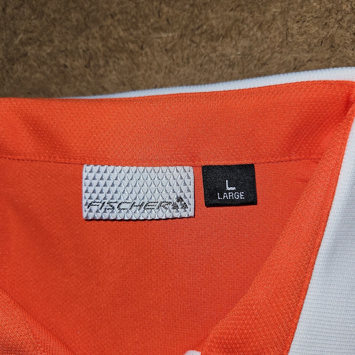 フィッシャー レディース速乾シャツ(オレンジ×白)Lサイズです。