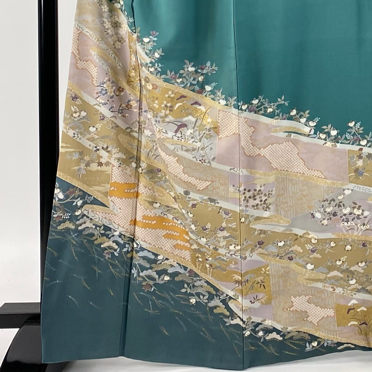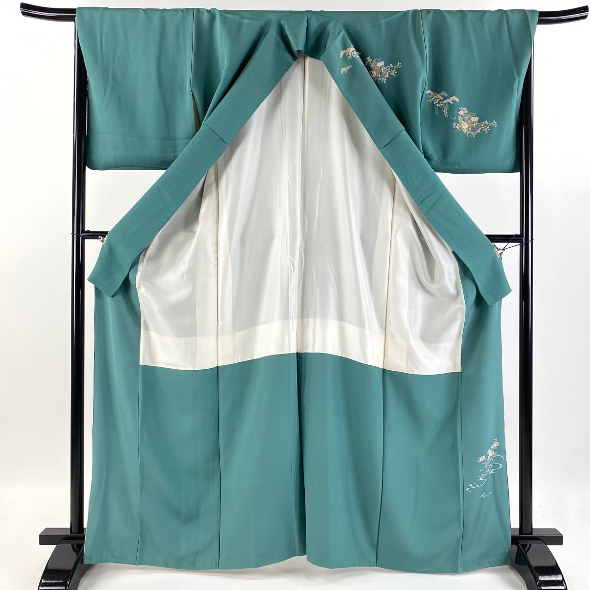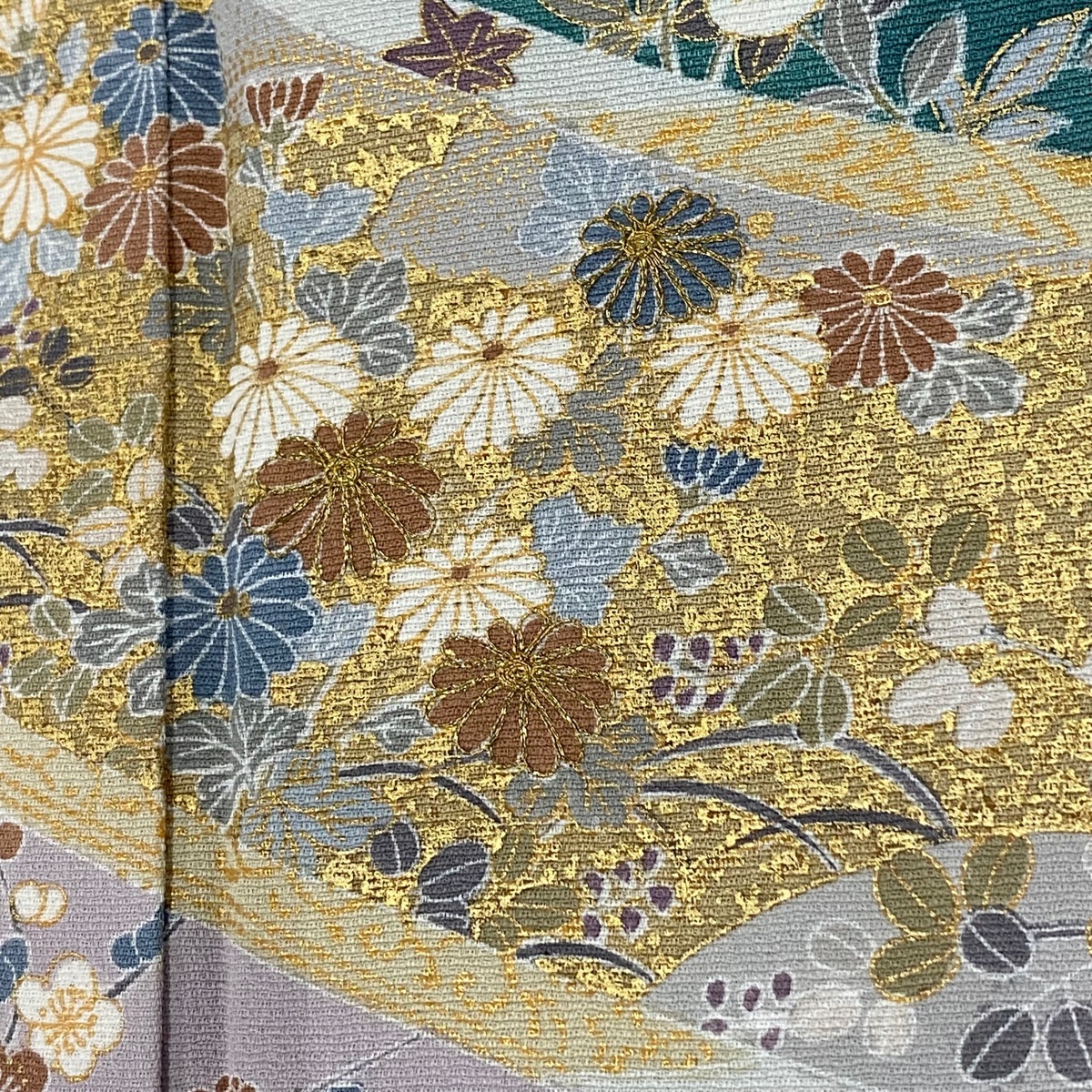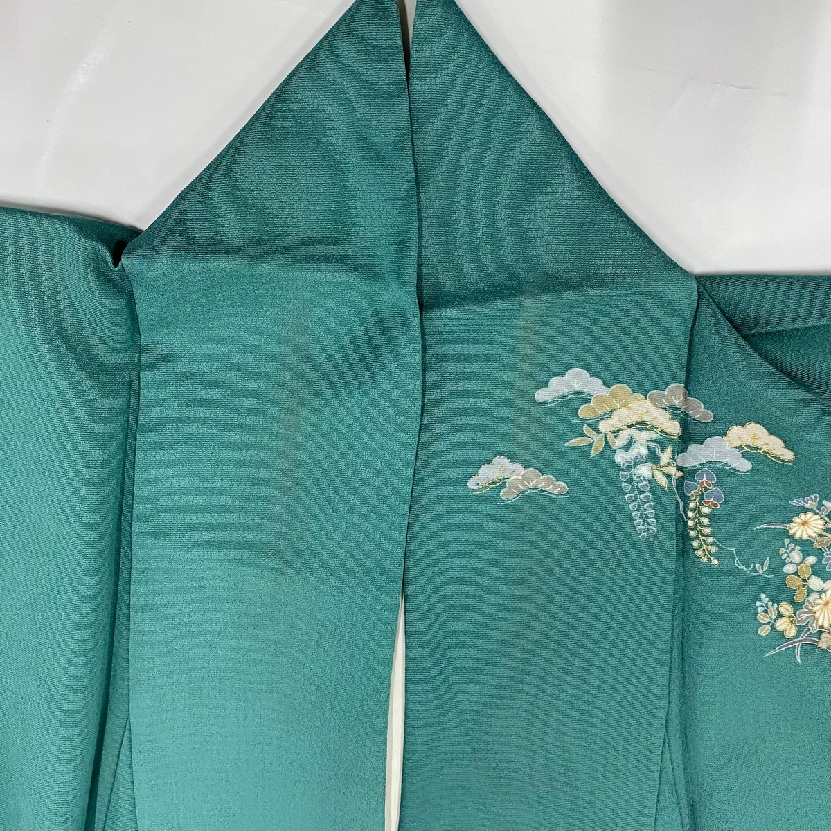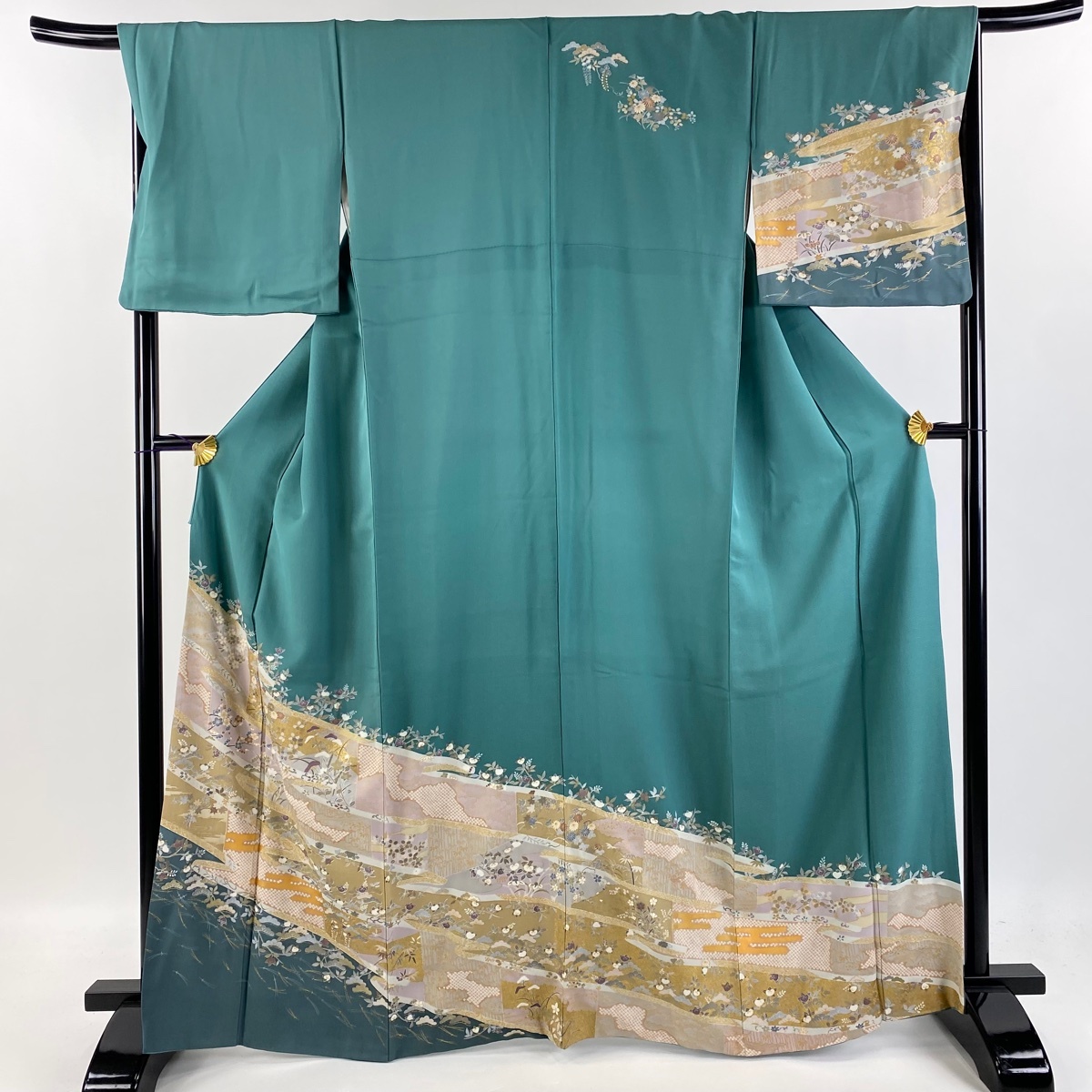 | 訪問着 秀品 松竹梅 菊 金彩 金糸 緑 袷 身丈166 裄丈67.5 L 正絹 【中古】 |