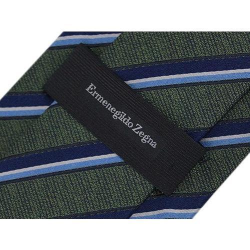 【未使用】ゼニア ブランド ネクタイ エルメネジルド・ゼニア Ermenegildo Zegna 高級 シルク 100% ストライプ モスグリーン 緑 mu30044