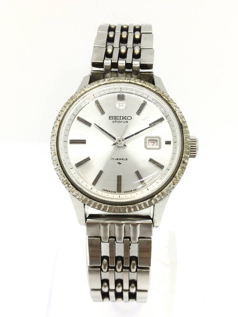 ◇1円◇ SEIKO セイコー 腕時計 2118-0240 chorus コーラス 手巻き デイト アナログ ラウンド 17石 3針 シルバー文字盤 稼働品