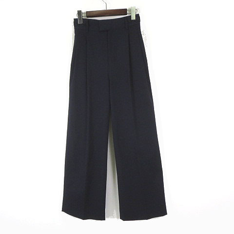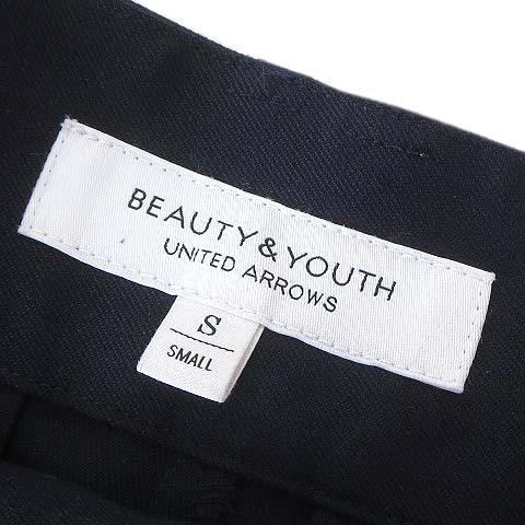 B&Y ユナイテッドアローズ ビューティー&ユース パンツ タック ワイドパンツ ウールライク ストレート ハイウエスト センタープレス S 紺