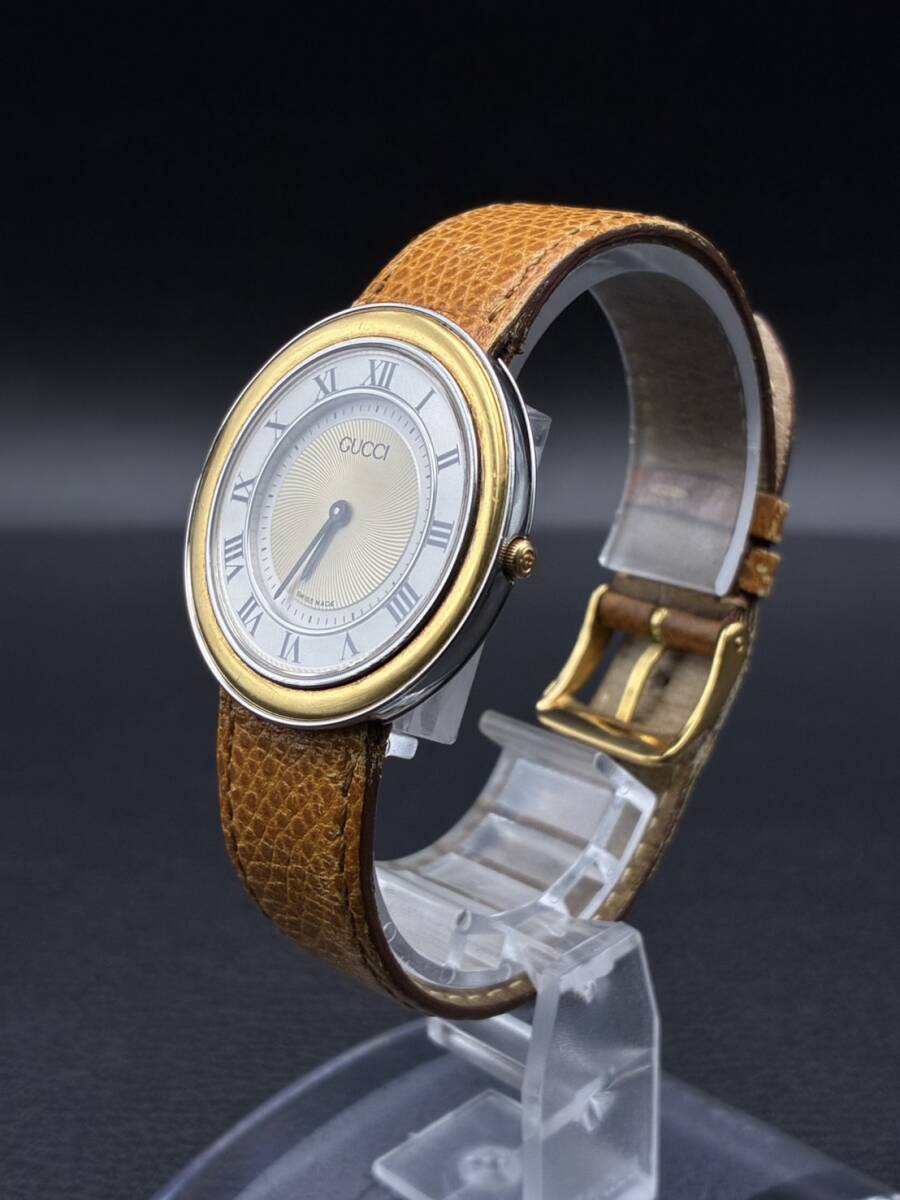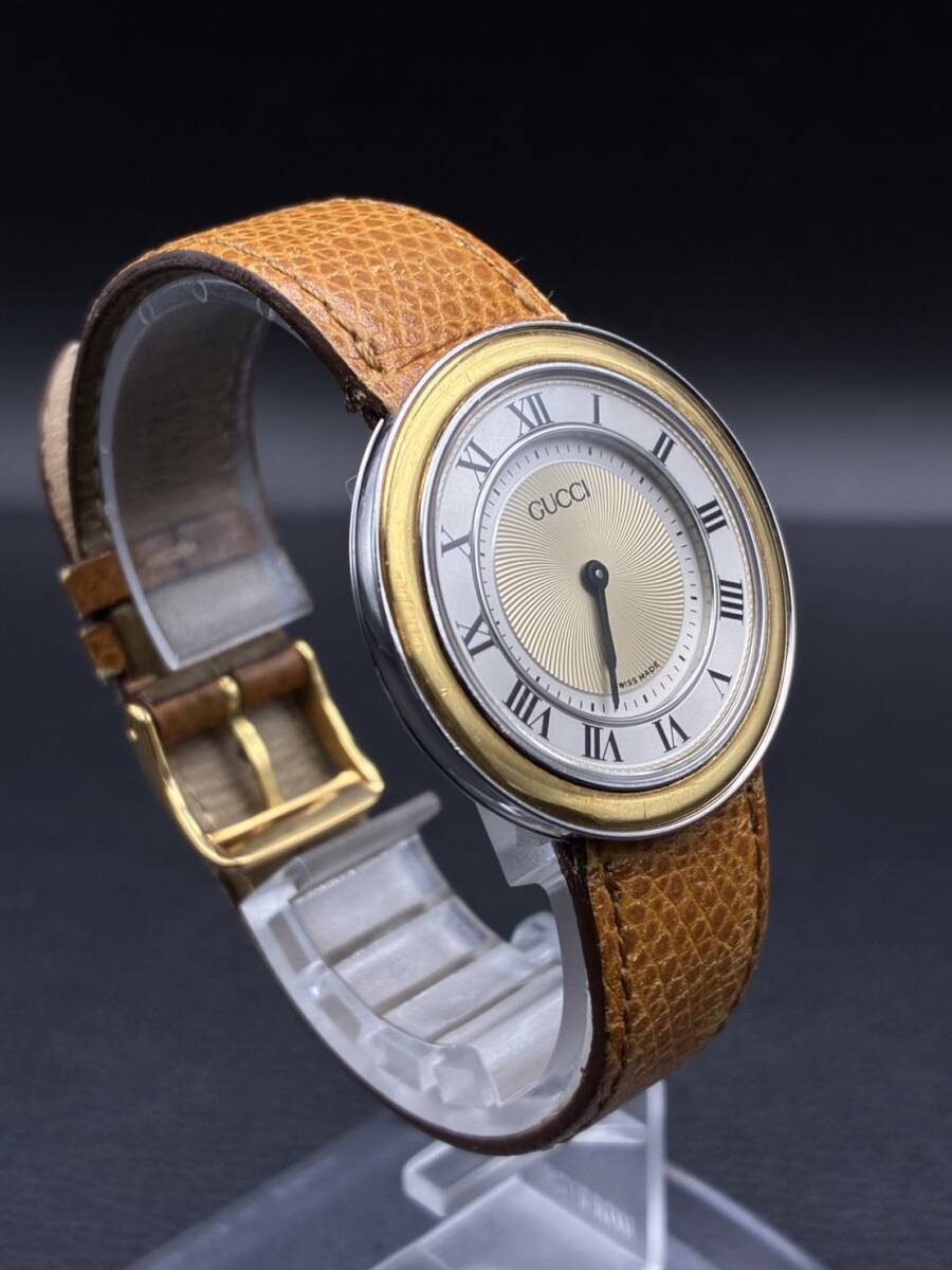 ◆商 品 名◆ | H/K 稼働品 電池交換済!1円~『GUCCI 550M QZ ラウンド フェイス 腕時計』グッチ ブランド ウォッチ 時計 クォーツ ゴールド系 |