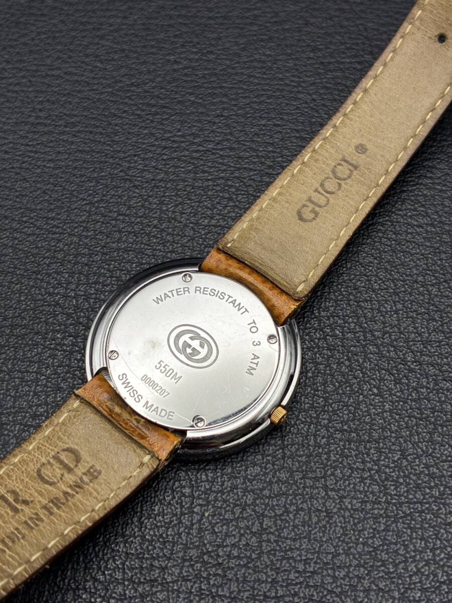 H/K 稼働品 電池交換済!1円~『GUCCI 550M QZ ラウンド フェイス 腕時計』グッチ ブランド ウォッチ 時計 クォーツ ゴールド系