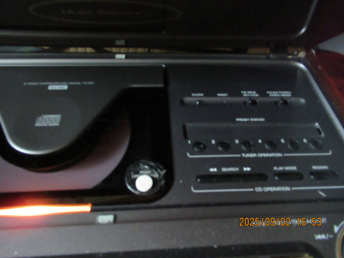 整理のため出品いたします。CD(パソコンで製作した音楽D) ラジオはOKでした。液晶もまだ明るいです。外観はきれいですが、中の操作パネルが、この機種特有のべたつきがあります。そのため、傷汚れありとしています。リモコン欠品。30年ほど前の機種につき、ノ-クレ-ムノ-リタ-ンでお願いします