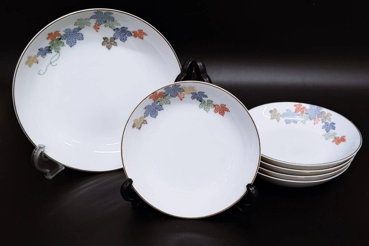 深川製磁 宮内庁御用達 有田焼 丸皿 小皿5枚 中皿1枚 セット もみじ 金縁 紅葉柄 食器 和食器 インテリア 飾り皿 盛皿