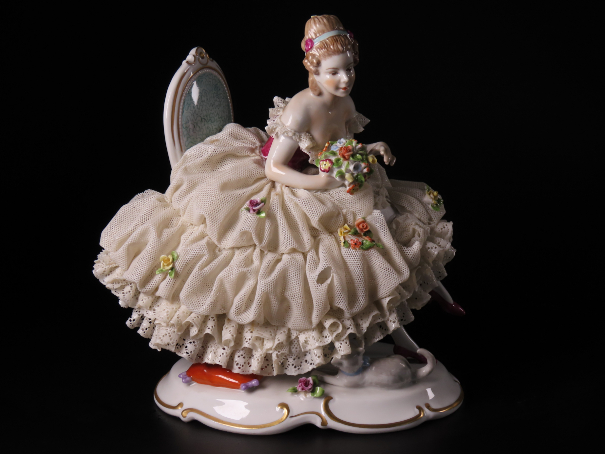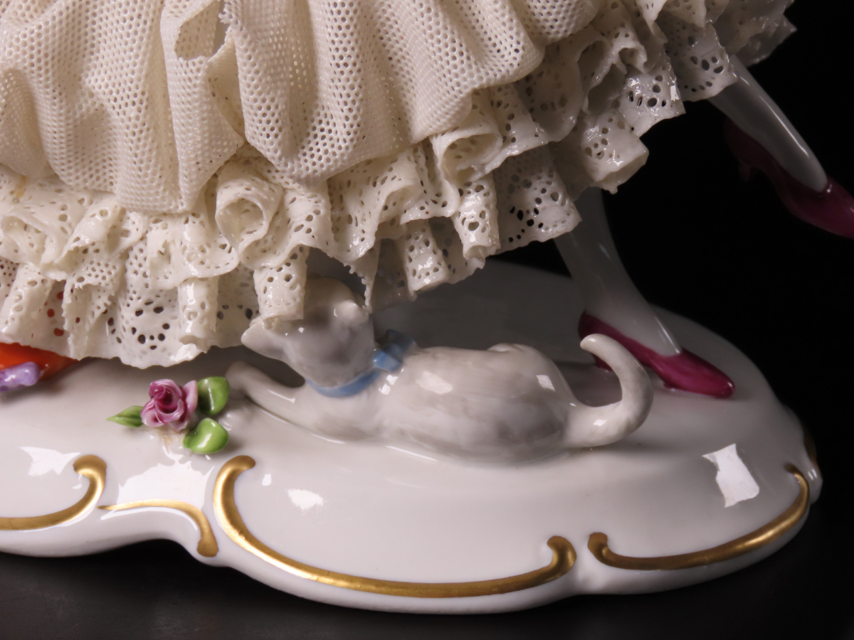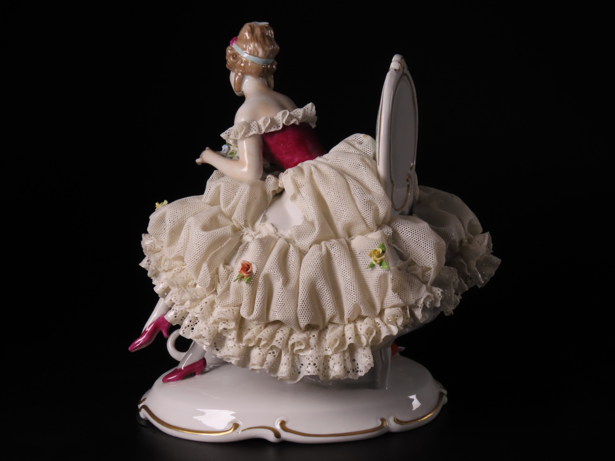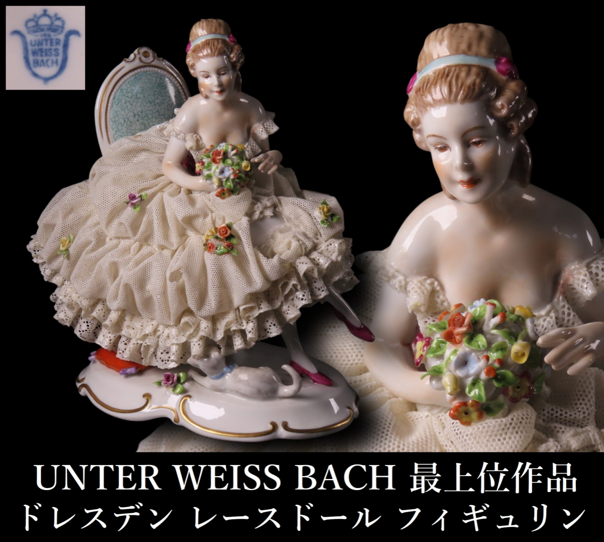 【ONE'S】UNTER WEISS BACH ウンターヴァイスバッハ 最上位作品 高20.3cm ドレスデン レースドール フィギュリン 陶器人形 置物 西洋美術 | |||