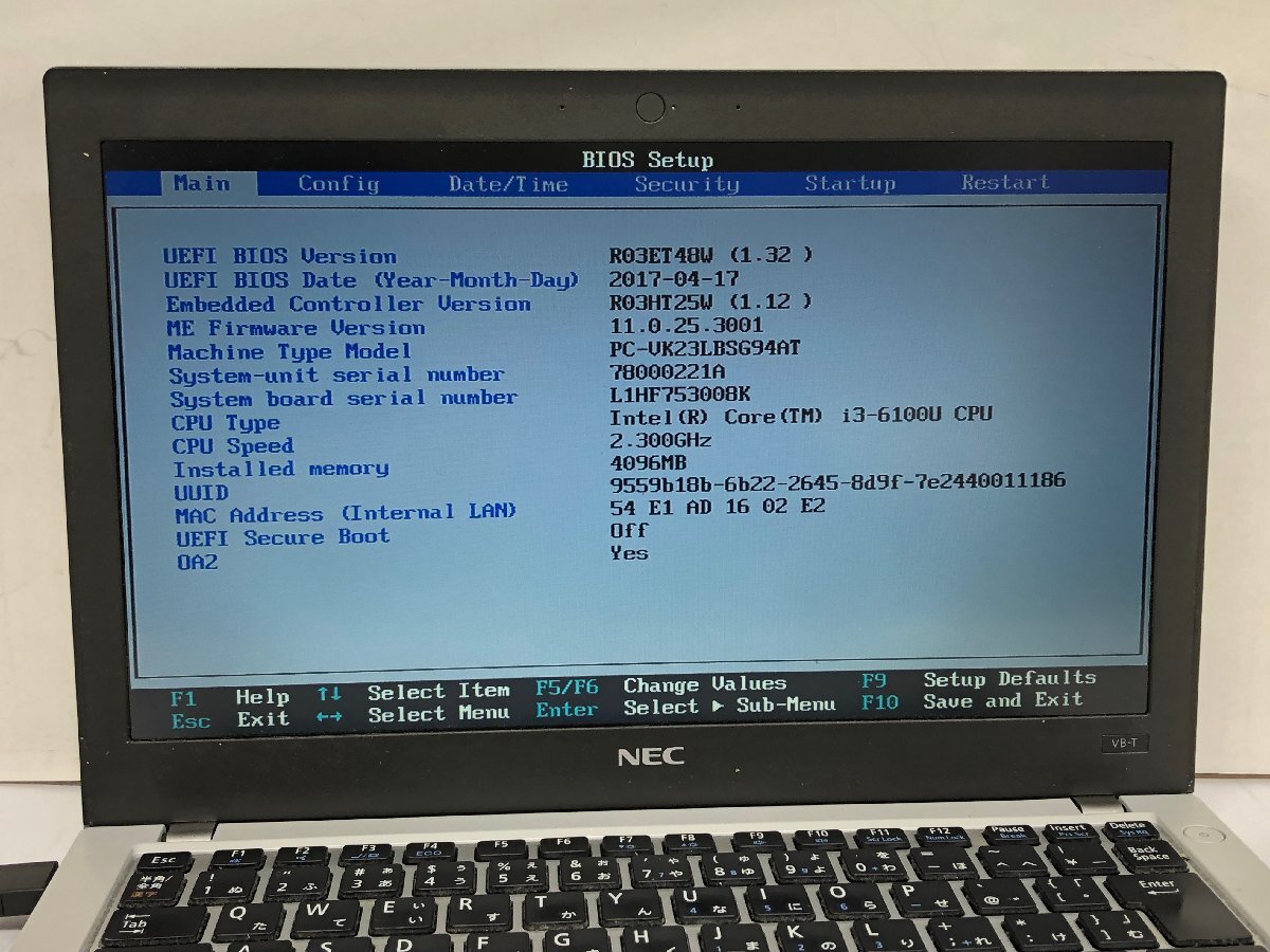 ジャンク/ NEC PC-VK23LBSG94AT Intel Core i3-6100U メモリ4.1GB ストレージ無し 【K20474】
