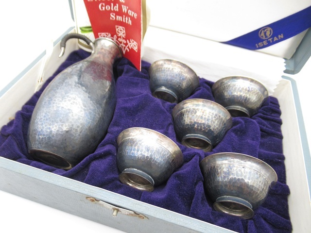 〓3)伊勢丹 酒器セット 徳利 お猪口 銀製 刻印 箱入り 総重量163g SILVER シルバー ξ