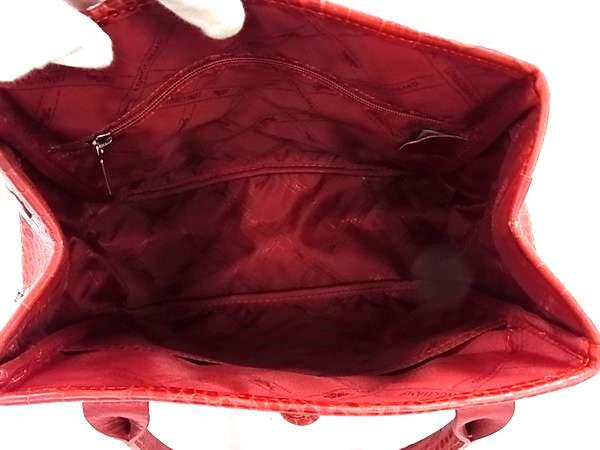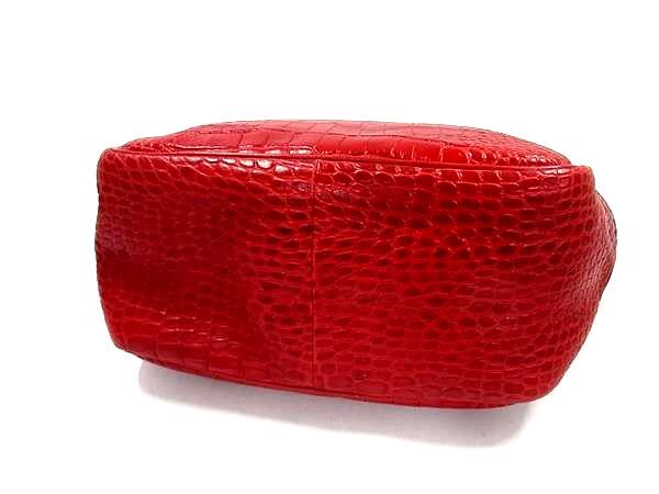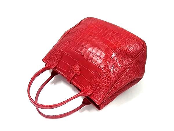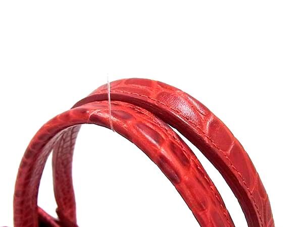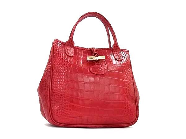 1円 ■美品■ LONGCHAMP ロンシャン ロゾ クロコダイル型押しレザー ハンドバッグ トートバッグ レディース レッド系 BN5024