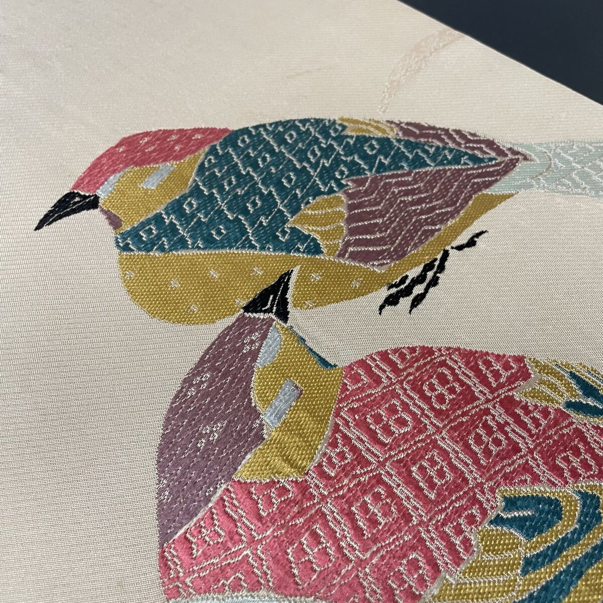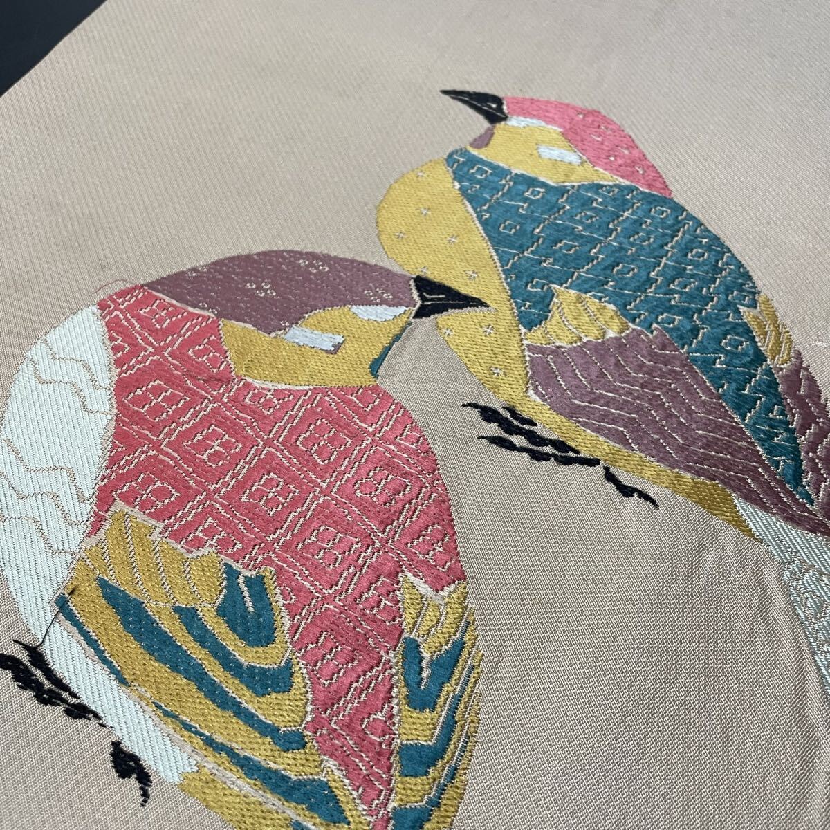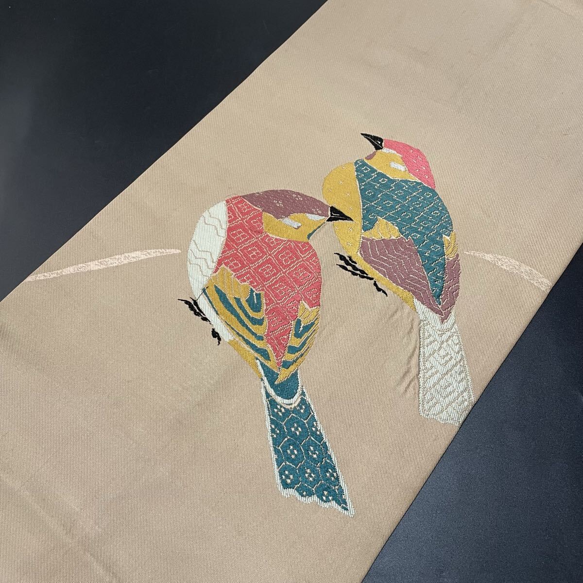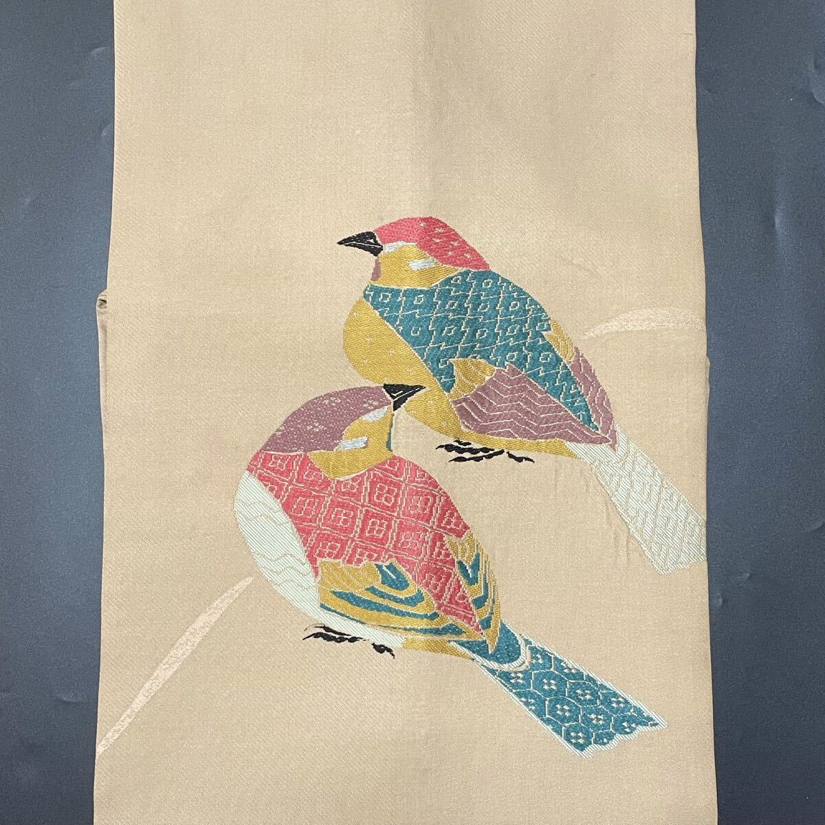 ・華やかな鳥がとても素敵な九寸名古屋帯です。 ・たれ先から90cm上辺りに小さなシミがあります。(写真8枚目) ・締め跡があり、使用感もあります。 ・まだまだ着用もしていただますし、着付け練習やリメイク材料にもおすすめの帯となっております。 ・お安く出品致しますので、是非この機会にいかがでしょうか。 |