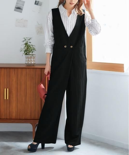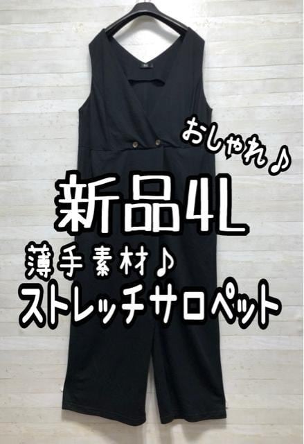 新品☆4L♪黒系♪薄手素材ストレッチ♪サロペット♪ワイドパンツ☆G919