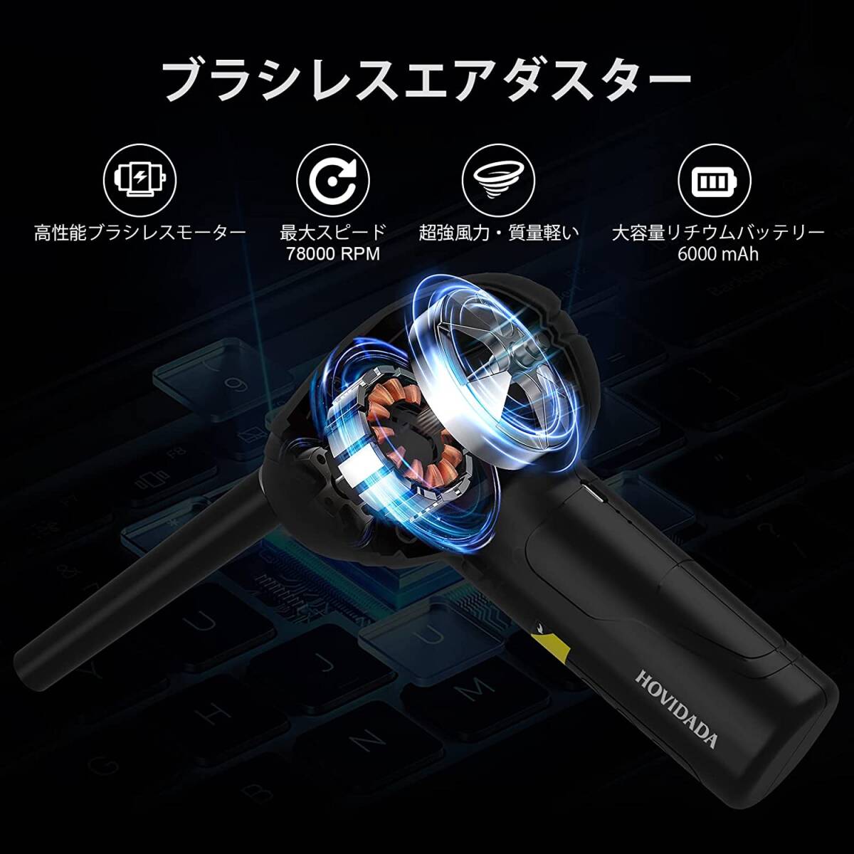 【超強力】充電式エアダスター ブラシレスモーター搭載 78000RPM LEDライト付き