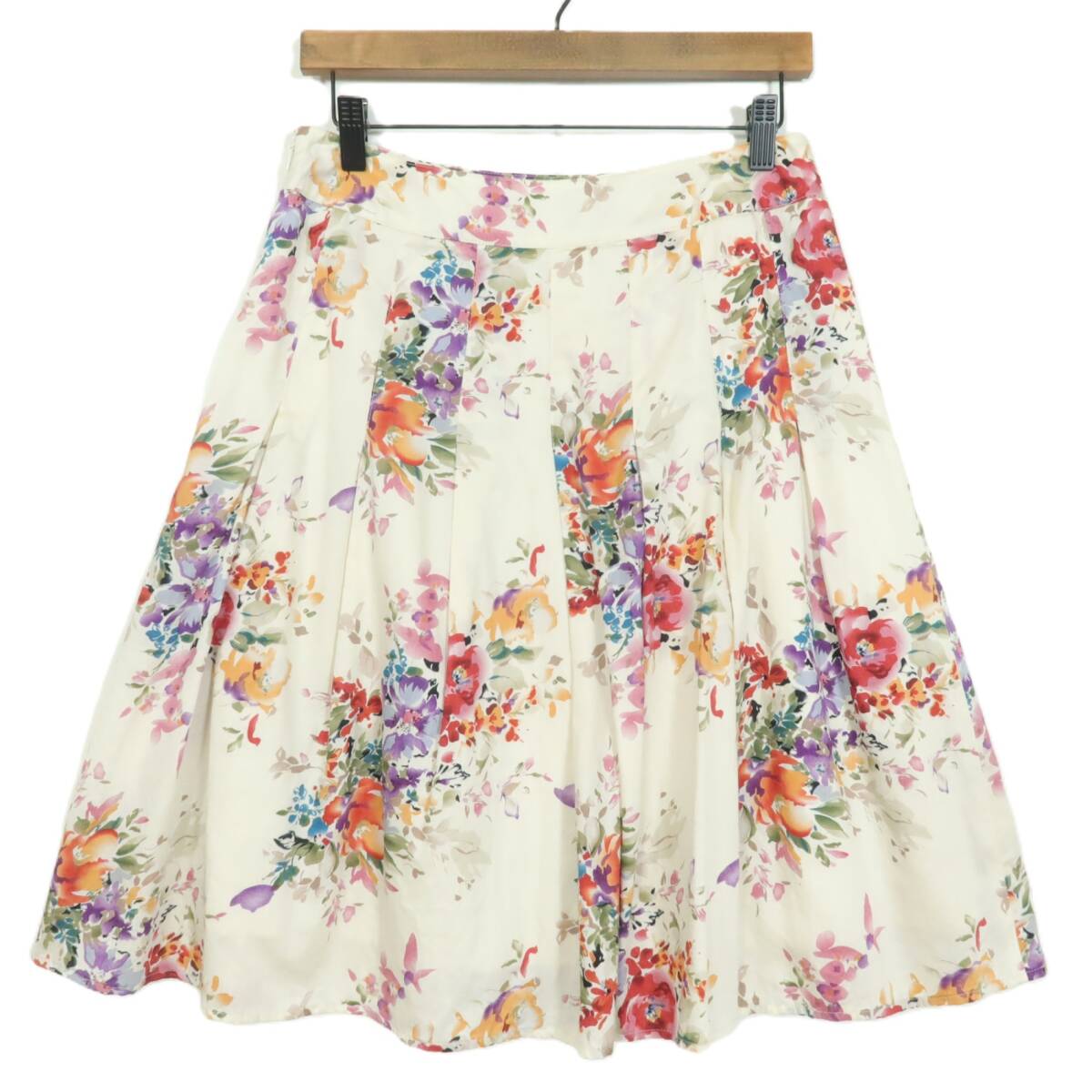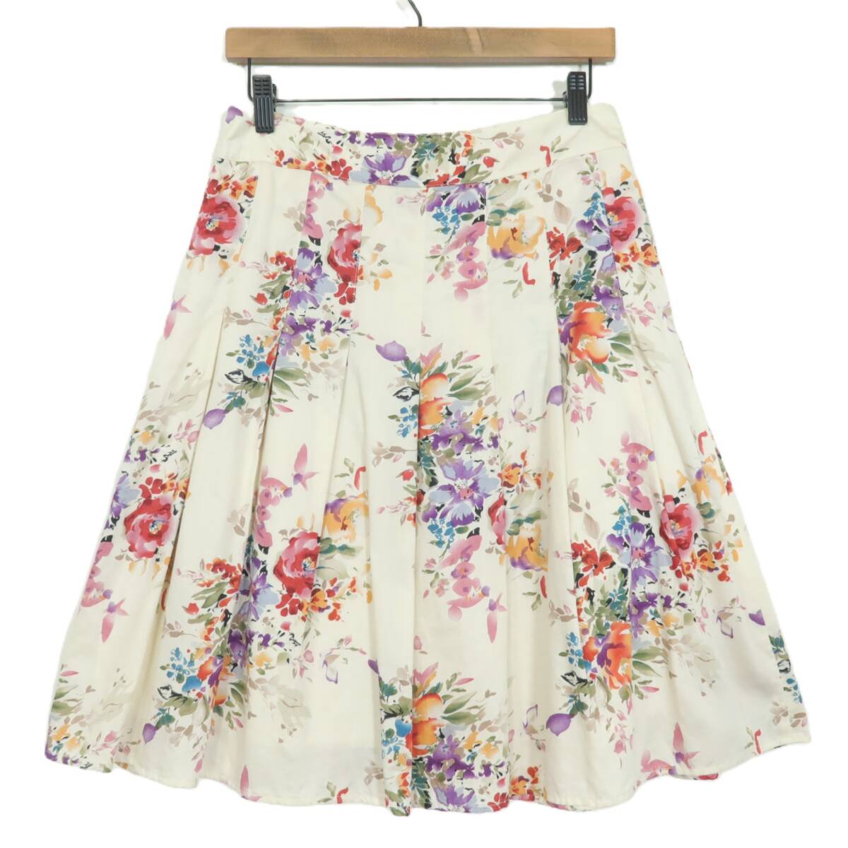 商品説明 | 【実寸約】ウエスト72丈58.5(cm) 【サイズ表記】 11 【素材】綿100 裏地:綿100% 【状態】普通の使用感のあるお品物 【デザイン】ベージュ色系 ひざ丈ボックスプリーツスカートです。 薄手/花柄 裏地あり/ |