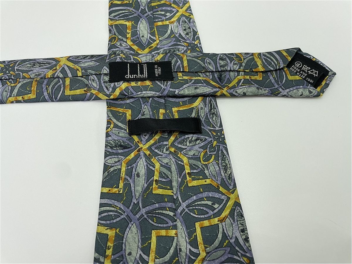 【超美品】dunhill ダンヒル ロゴ&チェック柄 ネクタイ 3本以上 送料無料 メンズ グレイ 0804030