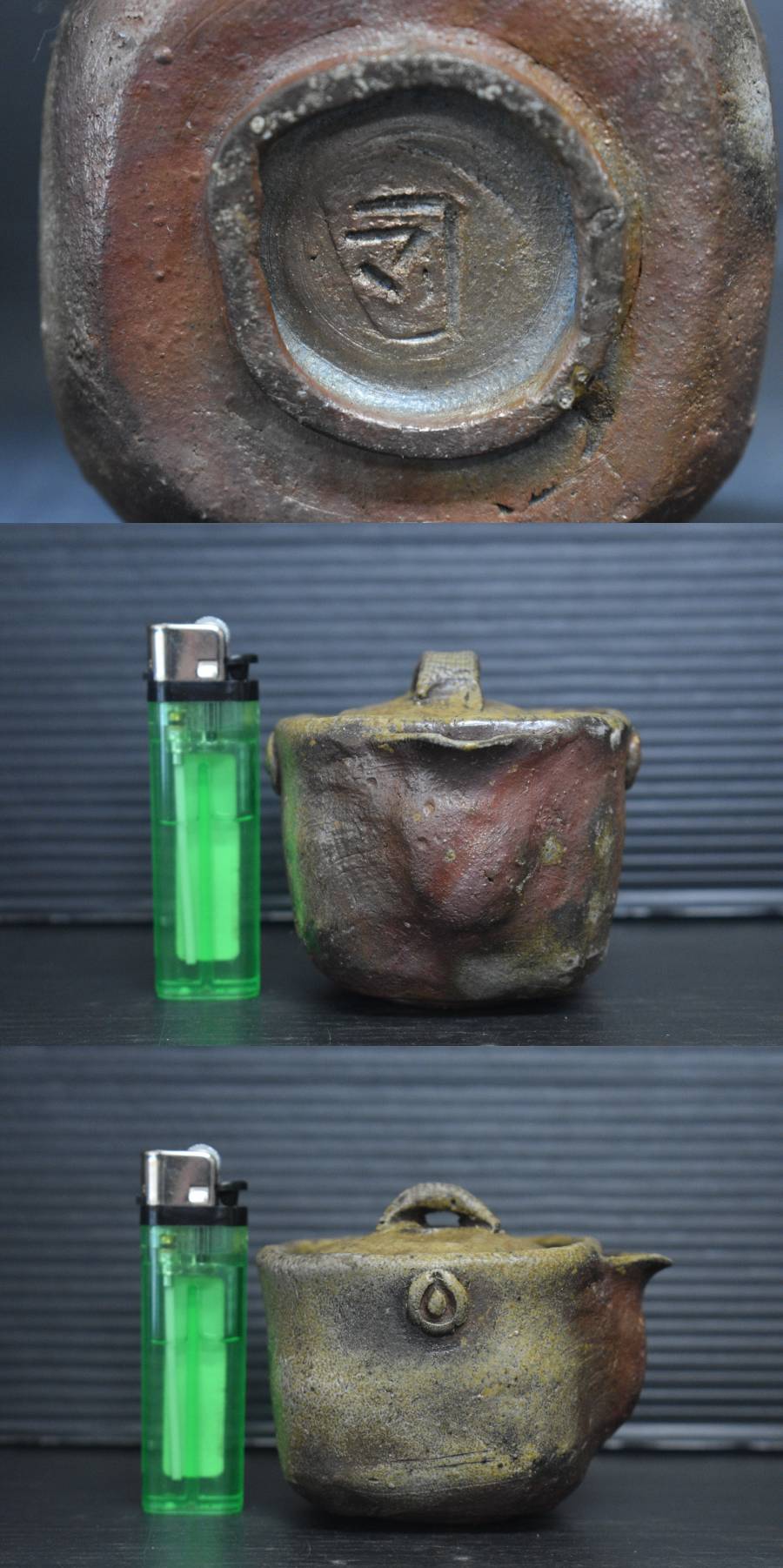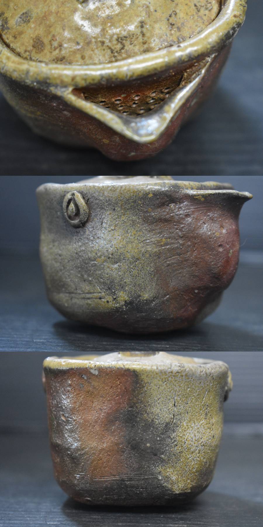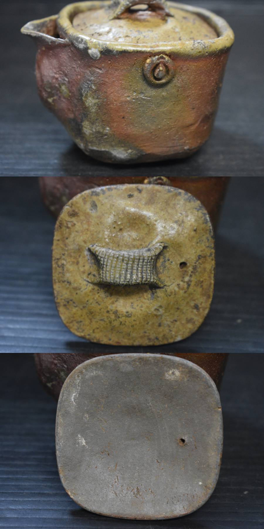 うぶ品 時代物 山本陶秀? 備前焼 手造四方宝瓶 急須 煎茶道具 古美術品