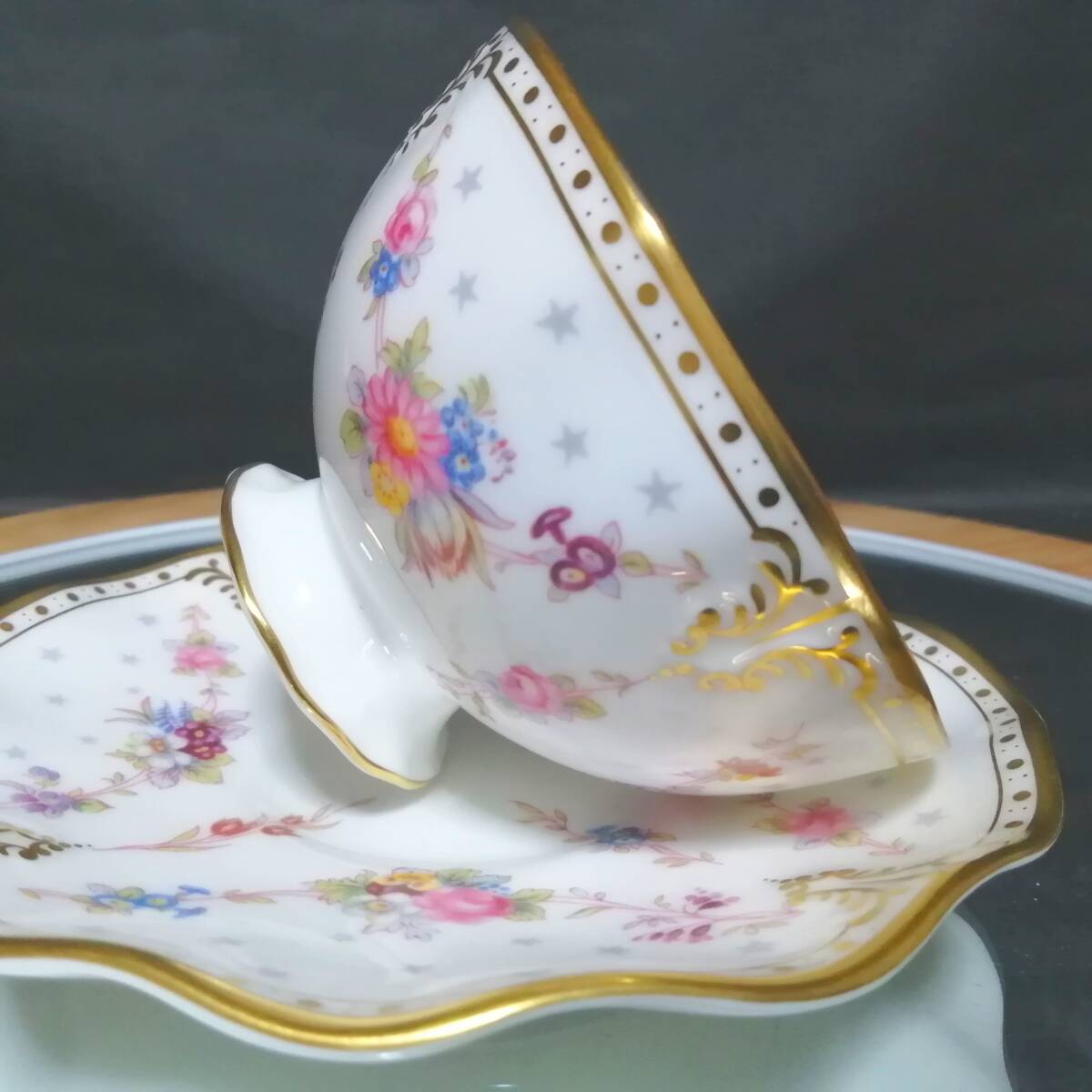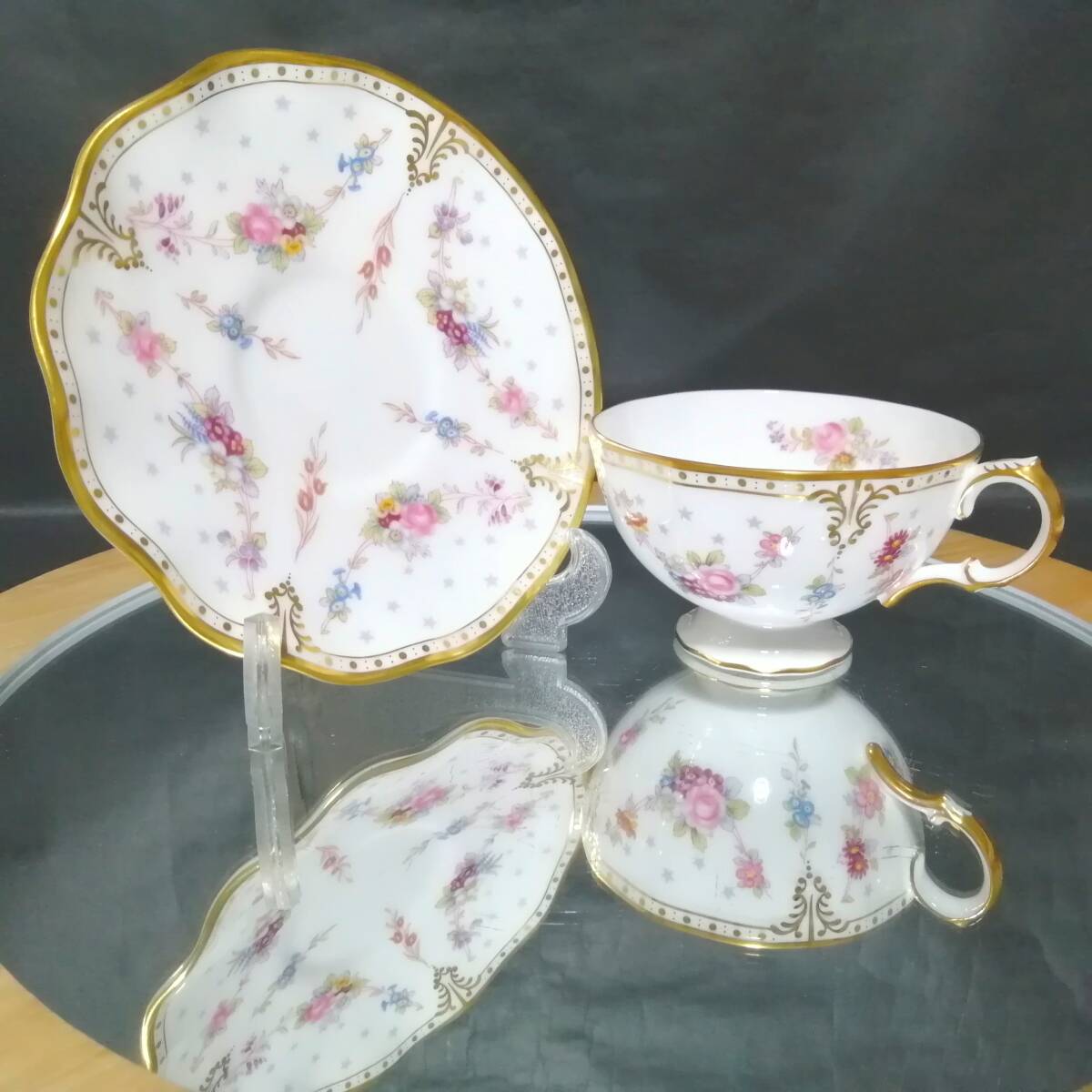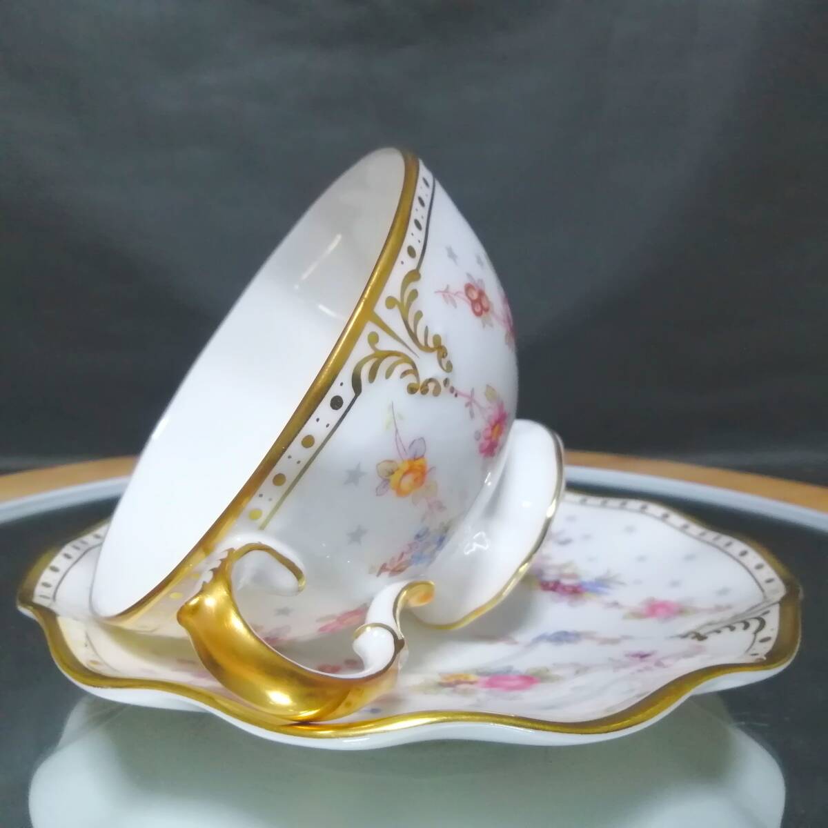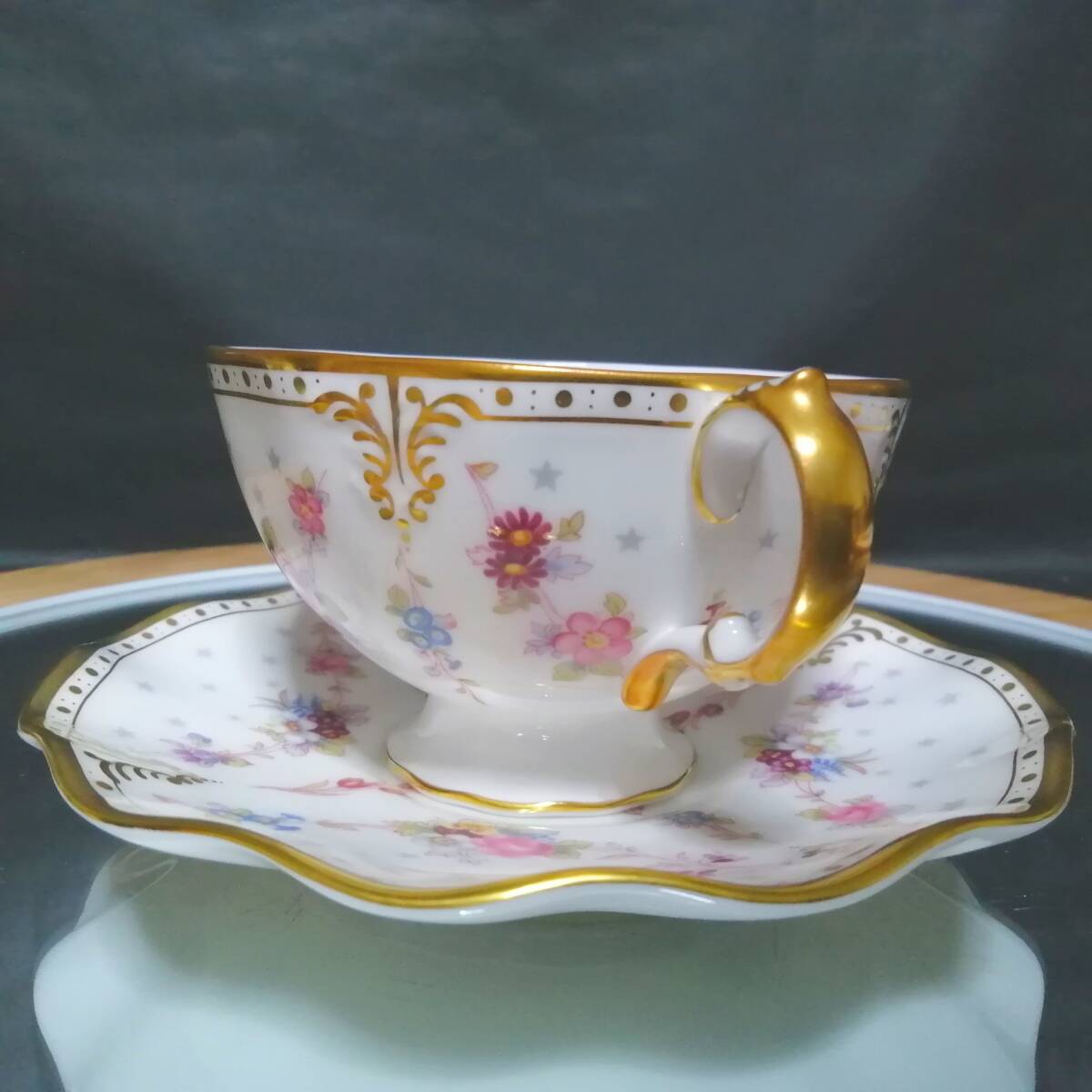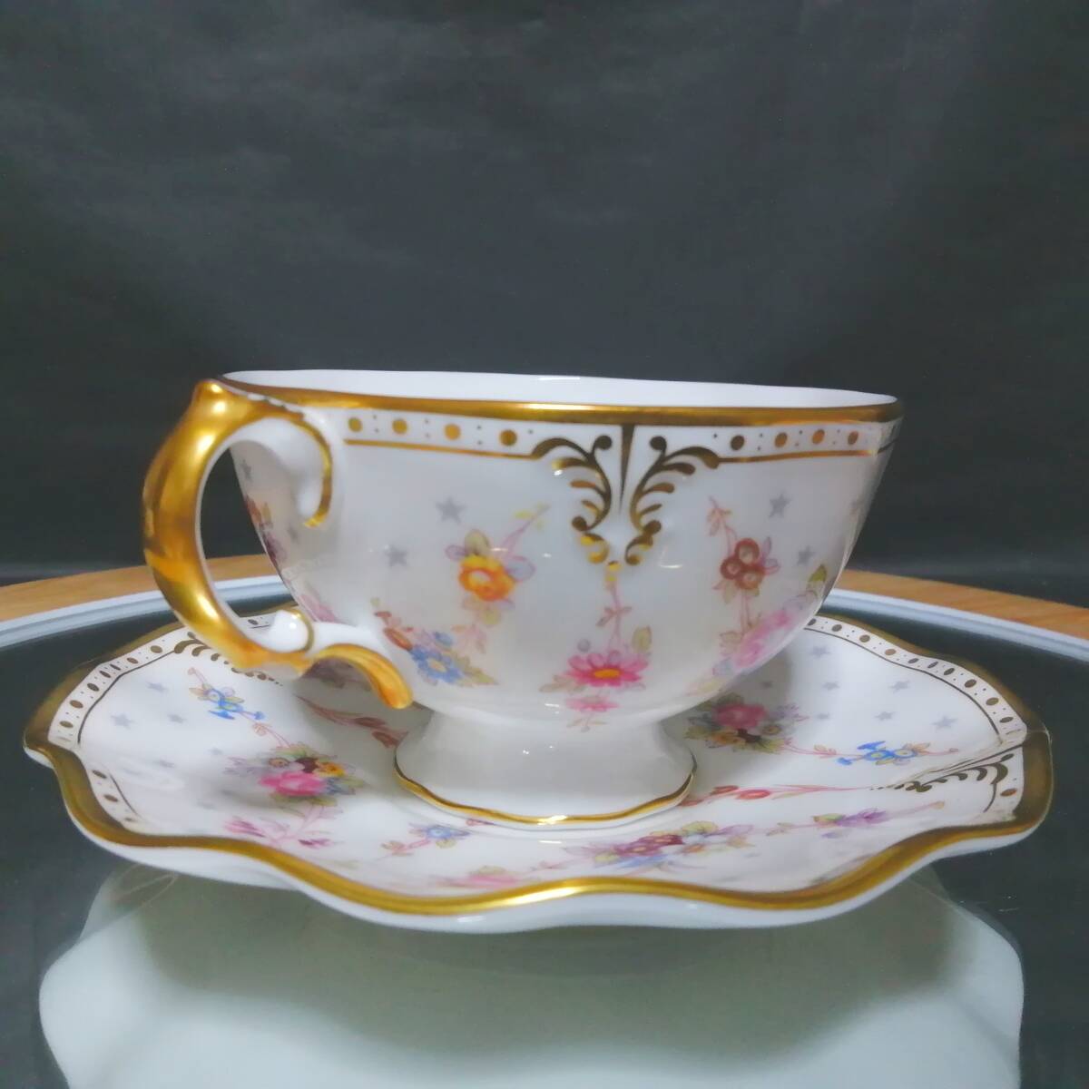 趣味で集めておりますが、保管場所が足りず 大切に使って下さる方の元で第2の人生を歩んでほしいと思い出品します。 ◆◆◆サイズ◆◆◆(小数点以下は四捨五入) カップの直径 10CM カップの高さ 6CM ソーサーの直径 15CM ――――――――――――――――――――――――――― ◆◆◆お品物の現状◆◆◆ 目立った傷はありませんが LEDライトを当ててよーく見ると薄い保管スレが確認できました。 自宅保管品です、<完全完璧を求める方>及び 百貨店で陳列された状態の品をお探しの方はお控えください。 ―――――――――――――――――――――――――――― 化粧箱があるお品物は画像1枚目に載せております。 一部箱は色落ち、多少のシミ、劣化等があることをご了承下さい。 画像1枚目にある化粧箱の状態が気になる方は購入前に質問お待ちしております。 発送方法は発送方法欄をご覧ください。 リサイクル梱包材で梱包の上、割れないよう約3日間でご用意し発送します。 決済後3日以内の到着希望等お急ぎの方は事前に質問、 またはメッセージ欄よりお問い合わせください。 ※まれに発送お休みする期間があります、自己紹介文をご確認ください。 | |||