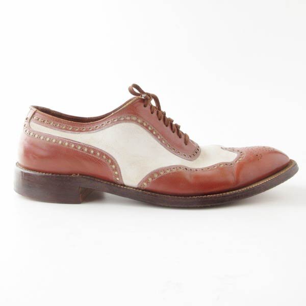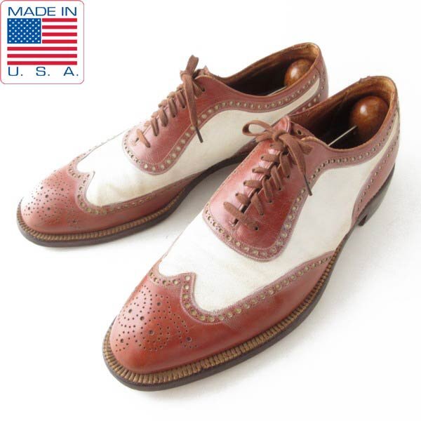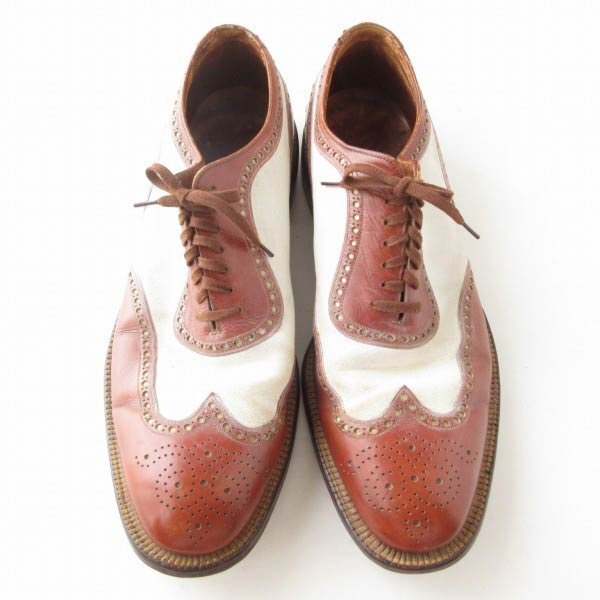 50s USA製 STETSON ツートン ウィングチップ 26.5cm 茶系×白 内羽根 Gld Master's アメリカ製 ビンテージ メンズ 靴 D152