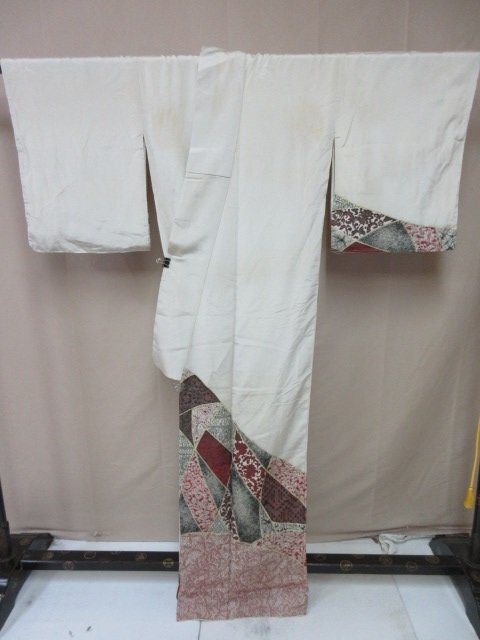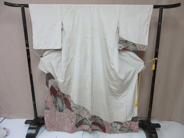 商品名 | 1円 中古 訪問着 正絹 着物 縮緬 式典 和装 和服 紋付 幾何学抽象 草花 高級 袷 身丈153cm 裄66cm【夢職】★ |