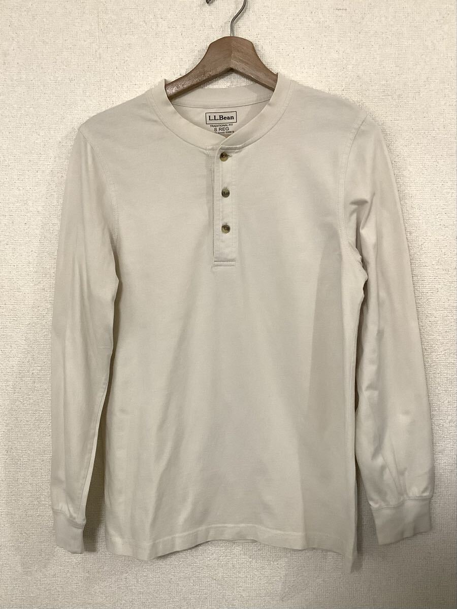 L.L BEAN エルエルビーン ヘンリーネック 長袖Tシャツ ベージュ アウトドア カジュアル ビンテージ メンズ 古着 S