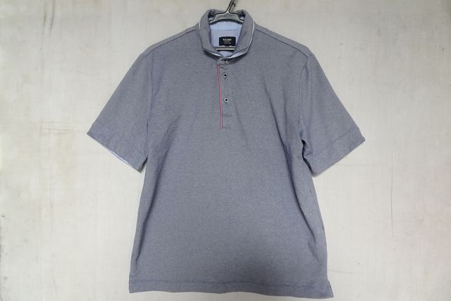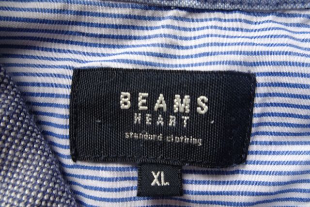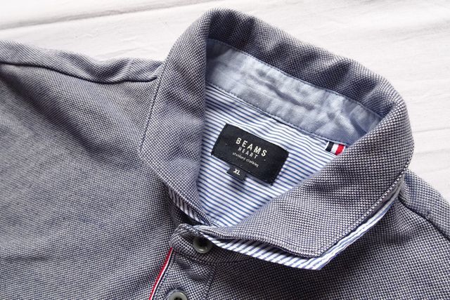 BEAMS/ビームス/半袖ポロシャツ/鹿の子素材/小さめ襟/襟二重生地/裾サイドスリット/紺/ネイビー/白/ホワイト/XLサイズ(9/4R7)