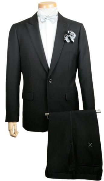 スリムラインのピークドラペル2釦シングルブラックパーティースーツ(タキシード)
