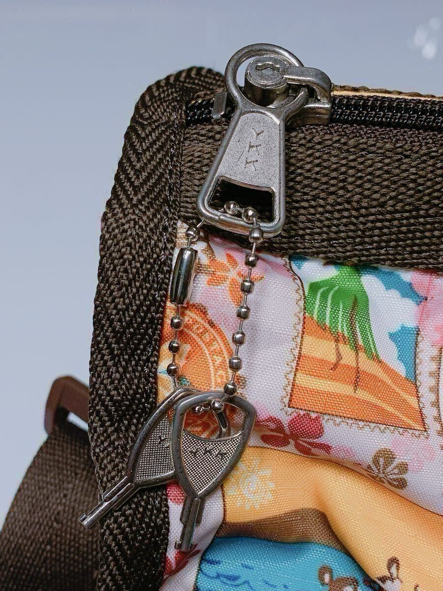 両サイドにも小さめファスナー付きポケット、たくさんのファスナー付きポケットがあるので出し入れも便利。