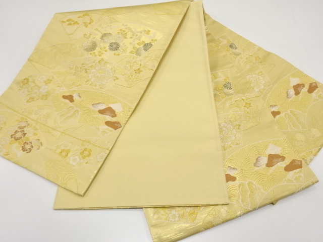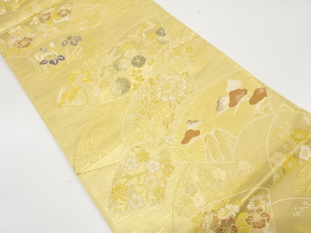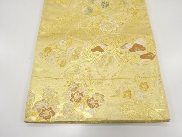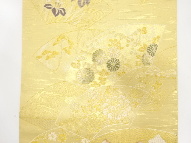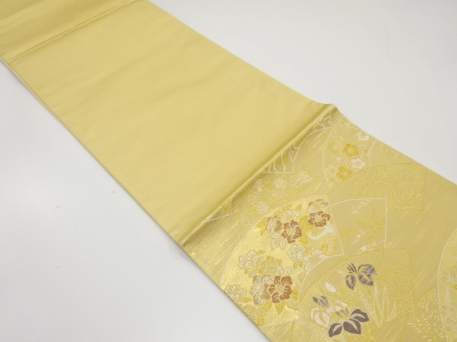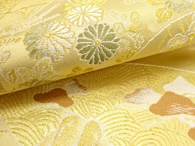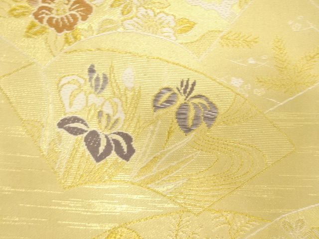 美品 地紙に菊・牡丹・菖蒲模様織り出し 袋帯 (IC2K-030)