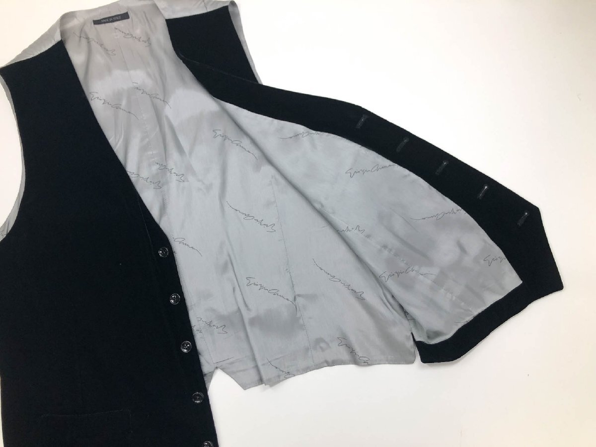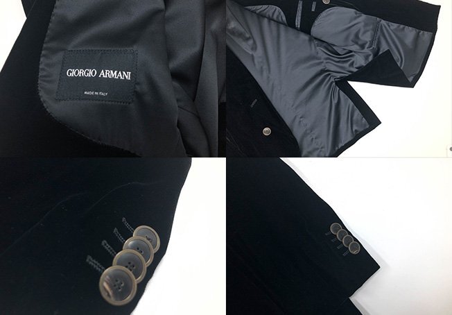 美品【ジョルジオアルマーニ GIORGIO ARMANI】最高級 黒ラベル KSGH10 OS200 4B 3ピーススーツ (メンズ) 56 黒 無地 ベロア◇32RMS2302