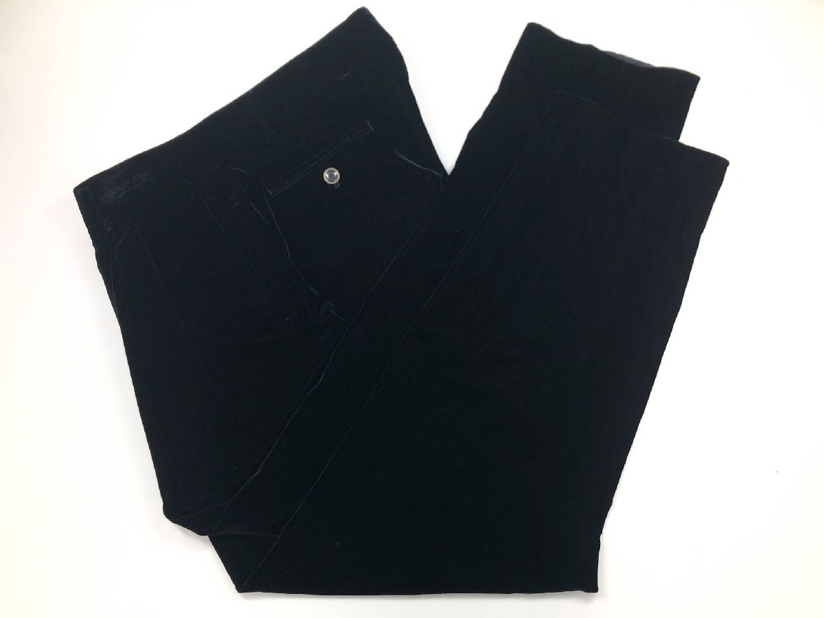 ・スラックス・・・ウエスト実寸約98センチ(3センチ出し、4センチ詰め可能)、股上約29センチ、渡り幅約39センチ、股下約79センチ、総丈約107センチ、裾幅約21センチ、シングル仕上げ(最大でプラス8センチ長くできます)