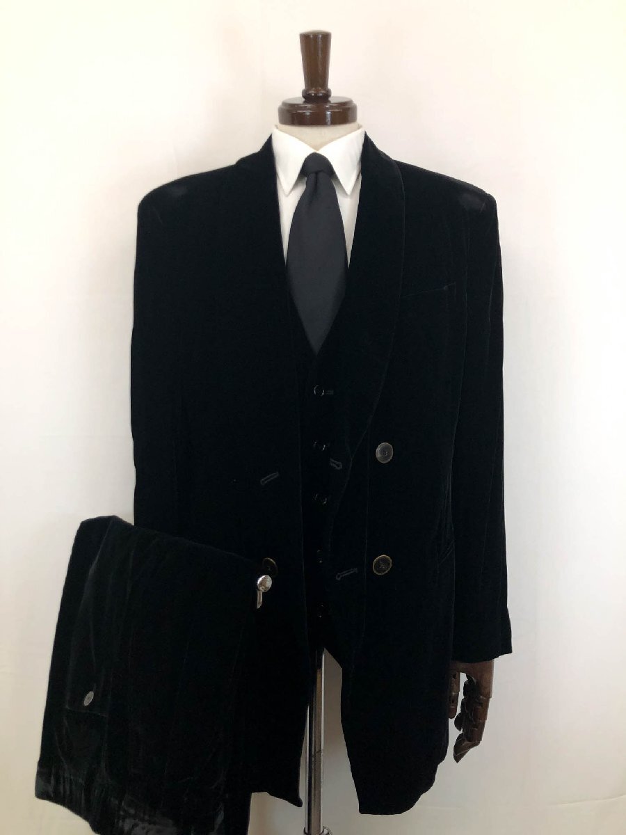 ・ただしこちらの商品は、ベストのみ品番違いの3ピースになります。ボタンの種類は違いますが、ベロアの生地感はとても近く3ピースとしてご着用いただけると思われます。