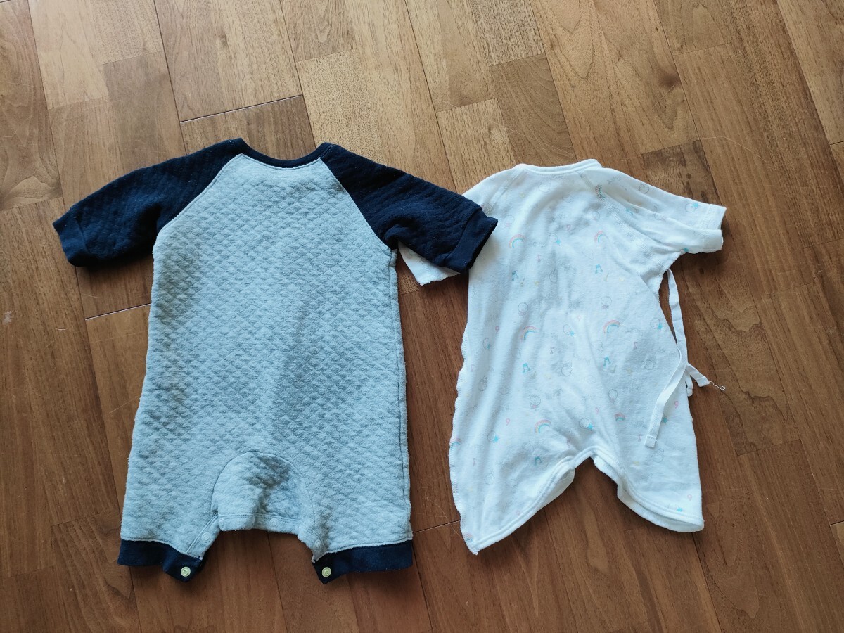 ベネッセの肌着とユニクロ(外タグが切られているので恐らくユニクロのものです)のロンパースです★