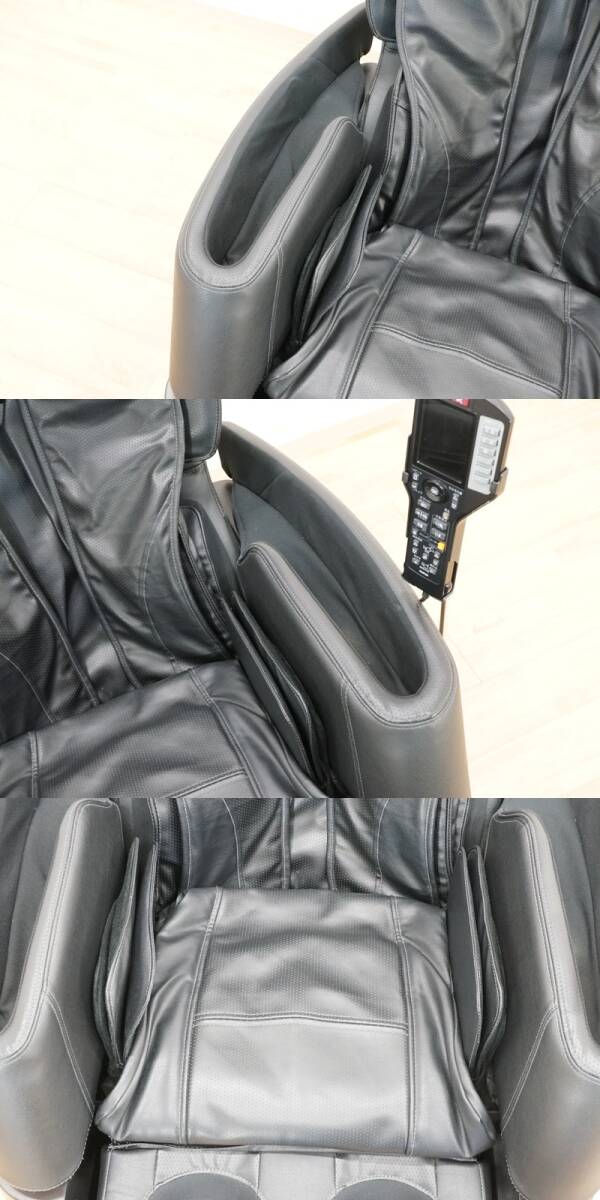 ■前ダ:【フジ医療器】リラックスソリューション マッサージチェア ④ SKS-6600 (α) 極メカ4D トリプルヒーター ソムリエコース■ ◆30分長時間コース「ソムリエコース」を含む業界最多の20種類自動コース 「20種類の自動コース」を搭載。気になるコリに集中マッサージを行うコースから、 下半身に重点を置いたオリジナルコースや全身を延ばすストレッチコースまでご用意。 15分間が主流の自動コースに、業界初 30分間の長時間リラックスコース「ソムリエコース」を新たに追加。 ウォーミングアップ~ゆったりマッサージ~しっかりマッサージ~クールダウン~リラックスモードへ、 30分の専用プログラムが、心身に極上の休息をもたらします。 ◆じ~んわり、じ~っくり、さらに進化「極メカ4D+スローハンド」 2つのもみ玉の上下・左右・前後の動きすべての動作時間をコントロールする「極メカ4D」に、 今回新たに「スローハンド制御」を搭載。これにより、超低速でコリを深くもみほぐしてくれる、 プロのマッサージ師のようなマッサージが実現しました。また高速から超低速までの速度域を広げることで、 より幅広い繊細なマッサージをお楽しみいただけます。 ◆上半身、腕と足裏を温めながらじっくりほぐす「トリプルヒーター」 こだわりの「トリプルヒーター」を搭載。上半身を温める遠赤綿入りヒーターパッド、ひじ下から指先、 足裏部の3つのヒーターが、全身に心地よい温かさを伝えます。 特に、遠赤綿入りヒーターパッドは、背面にセットすると背中全体を、 身体の前に回すと肩から腹部をカバーしますので、お好みの方法で心地よく身体を温めていただくことが可能です。 ◆大容量・高出力のエアーバッグを用いた全身「エアーマッサージ」 さまざまな部位ごとに、強弱調節が可能になった大容量・高出力のエアーバッグが心地よく圧迫。 もみ技との組み合わせで身体全体を気持ちよくほぐし血行を促進します。 ◆張地:PVC レザー、ポリエステル ◆電源:AC100V、50/60Hz ◆消費電力:220W (ヒーターのみ110W)、(待機電力:0.9W) ◆定格時間:30 分 ◆オートタイマー:約 7、15、30 分 ◆質量:約 95kg ☆取扱説明書は→ 取扱説明書ダウンロードへ 【サイズ】 ・通常時 :(約)幅86.8 × 奥行134.0 × 高さ121.0 × 座面高49.0 cm ・リクライニング時:(約)幅86.8 × 奥行154.0 × 高さ114.0 cm ※特別仕様のため画像の角度までしかリクライニングしない仕様になりますので、 写真画像にてご判断くださいませ。 ※動作確認済みです。 中古のお品となります。 付属品は写真にあるものが全てです。 ※喫煙環境下での使用の可能性がございます。 使用に伴うヨゴレ・キズが複数、ヤブレがございます。 背もたれカバーにファスナー引手の不足がございます。 オーナメント(穴なし)・オーナメント(穴あり)の不足がございます。 商品画像をよくご確認の上、ご参加ください。 [管理No.前25090231R1] |