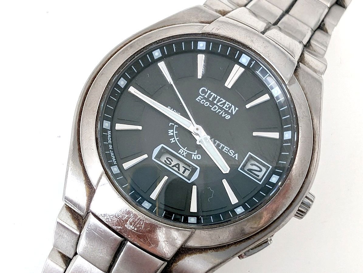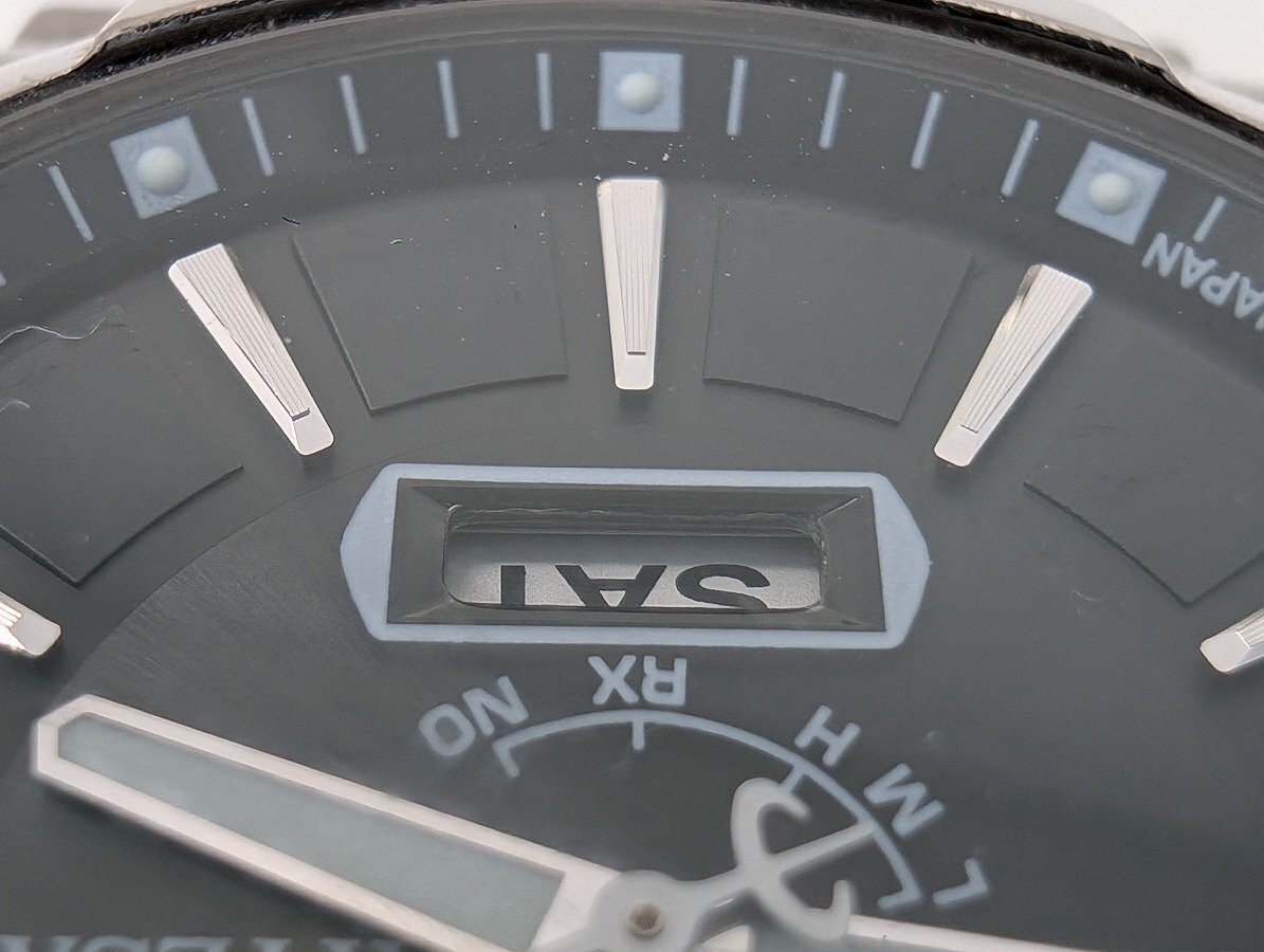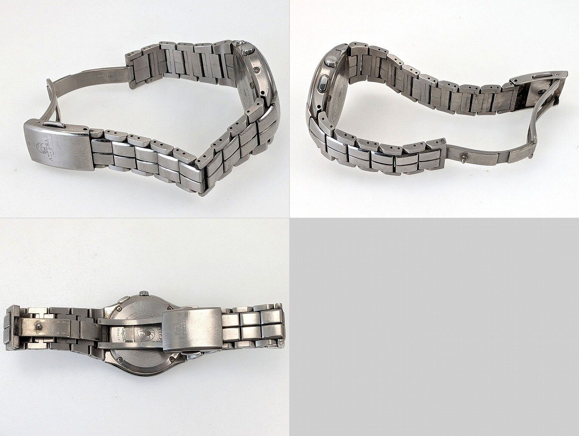 ★ご注意★ 当店取り扱いの時計は中古品のため、パッキンなど密封性能が劣化している場合がございます。 オーバーホール済・未使用品以外の時計については、防水の不具合は一切対応できません。 ※カテゴリがダイバーウォッチの場合でも同様です。 正常動作が確認できないジャンク出品です。 ・窓際の明るい場所で半日ほど光に当てたところ、通常運針になりました。 ・通常運針時にボタンやリューズの操作を行うと反応がありましたが、何回か操作したところで2秒運針に切り替わりました。 ・再度通常運針になるまで光に当ててみましたが、操作を行うとごく短時間で2秒運針になります。 ・2秒運針の状態では操作に反応はみられません。 ・通常運針時、電波受信操作の反応はありましたが、完了する前に動作が止まります。 全体に使用感があり、各所に傷、汚れがみられます。 上記の症状から、二次電池に劣化があるものとみられますが、正常動作しない要因は不明です。 現状渡しとなり、お届け後の動作保証はできません。 あくまで返品不可のジャンク品です。 説明文・写真をご確認のうえ、納得された方のみご入札ください。 すり替え・パーツ抜き等防止の為、お届け後の返品はできません。 ノークレーム・ノーリターン・ノーサポートでお願いいたします。 |
