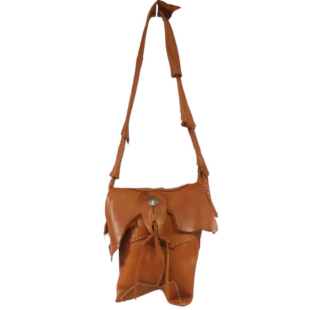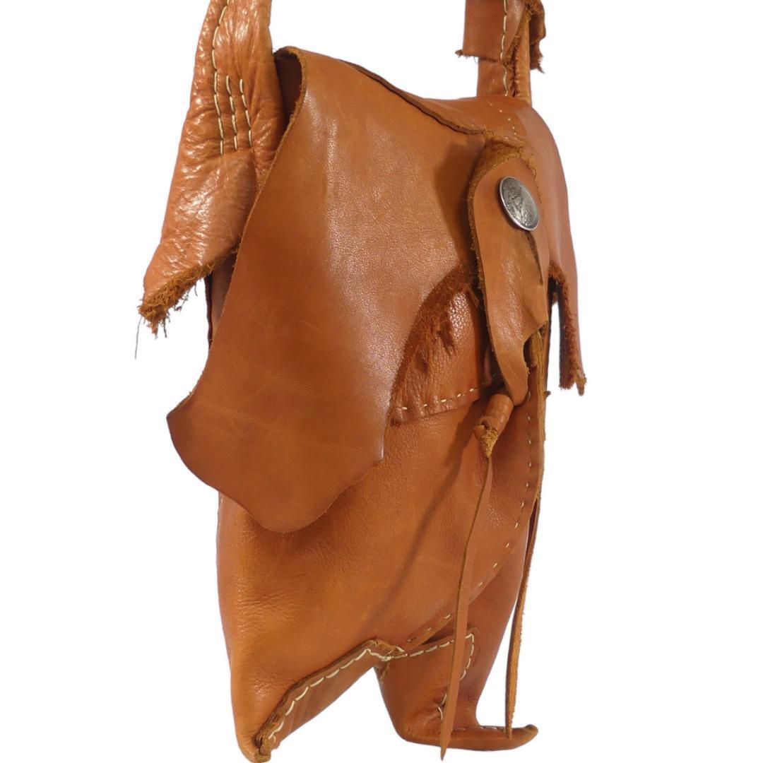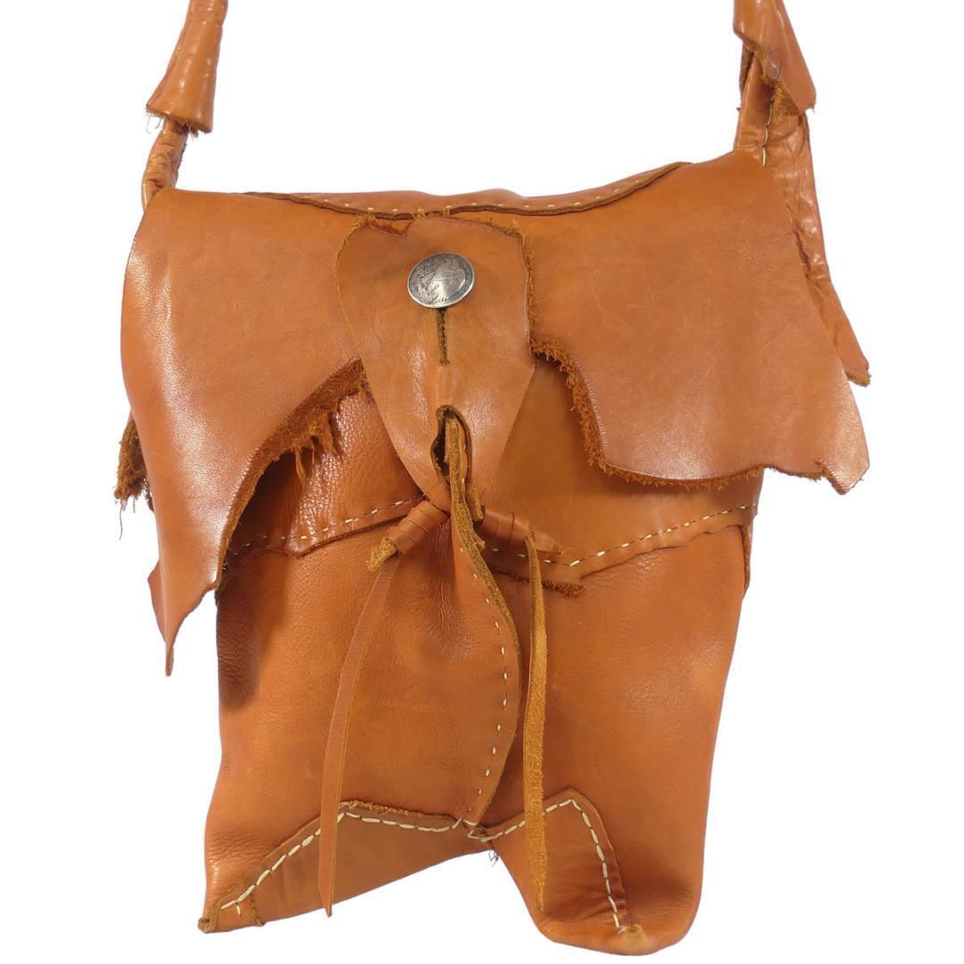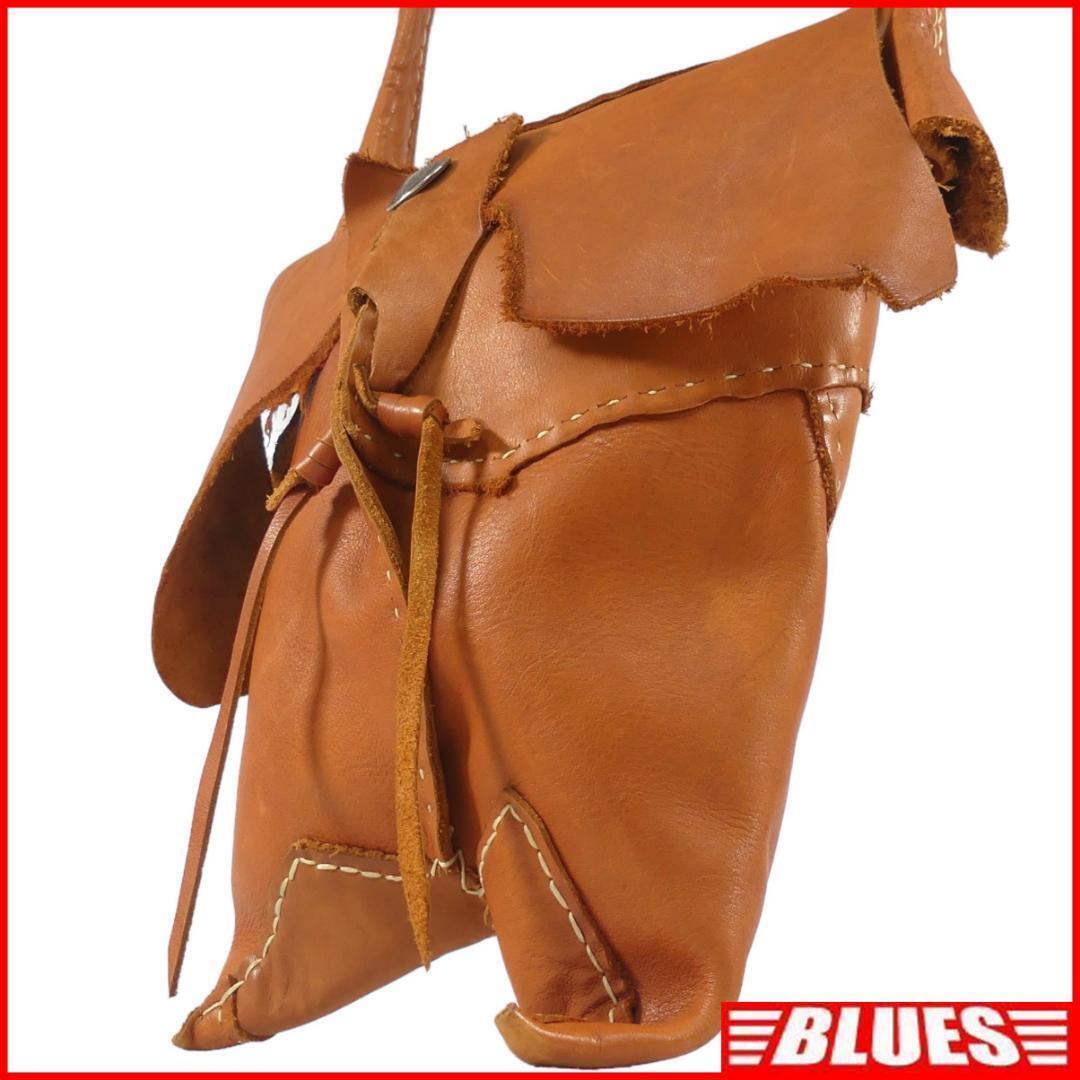 即決★N.B.★オールレザーショルダーバッグ メンズ レディース 茶 コンチョボタン 本革 肩掛けカバン 斜め掛け 本皮