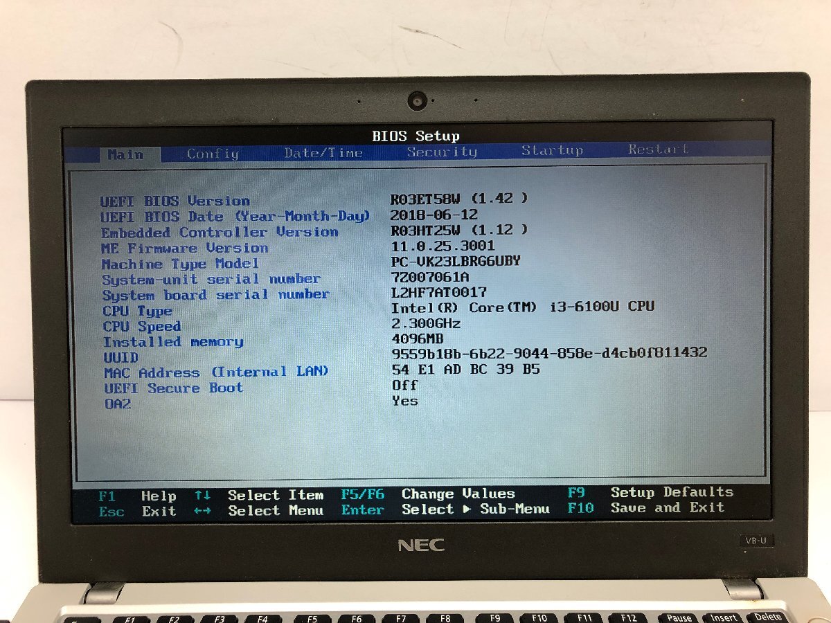 ジャンク/ NEC PC-VK23LBRG6UBY Intel Core i3-6100U メモリ4.1GB ストレージ無し 【K20437】