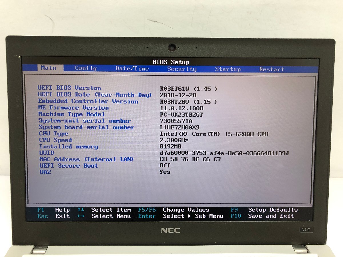 ジャンク/ NEC PC-VK23TBZGT Intel Core i5-6200U メモリ8.19GB ストレージ無し 【K20433】