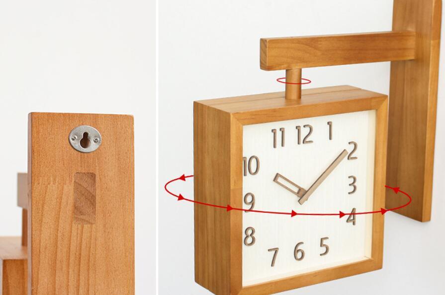 時間が見やすいシンプルなインデックス。 インデックス、指針ともに無垢材を使用。  時計本体は360°回転できます。 裏側の開閉はシンプルなマグネット式。 木製のシンプルなデザインなので、 大人や子どもを問わずリビングはもちろん、寝室や子供部屋にもおすすめです。