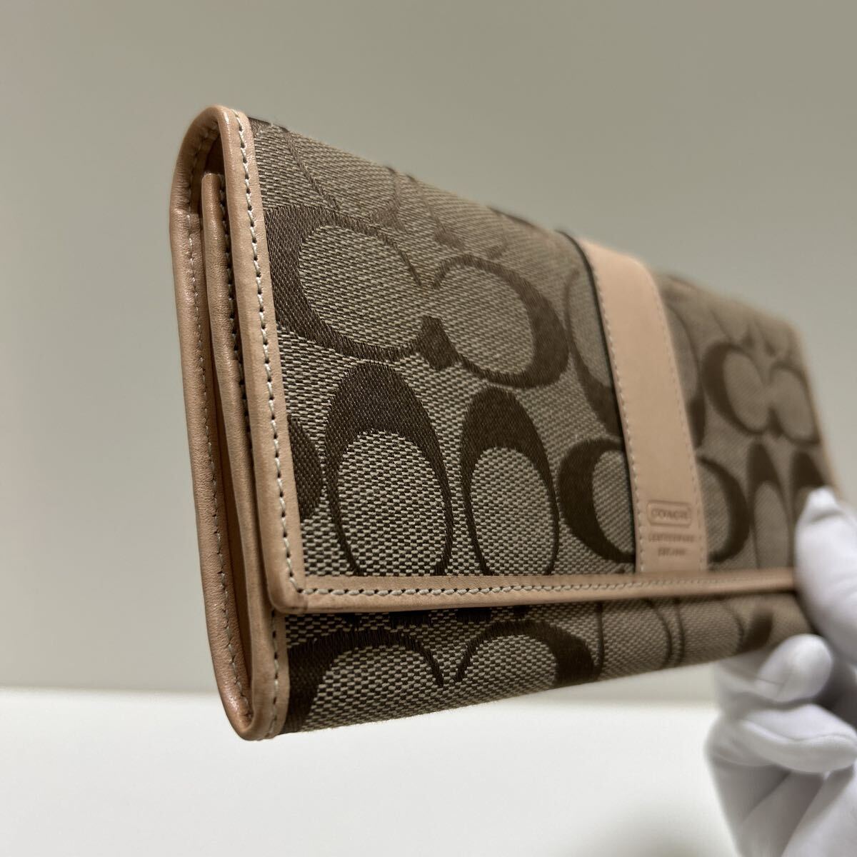 ☆良品-袋付き☆ ◆COACH コーチ かぶせ長財布 ベージュ&オレンジ◆ シグネチャー キャンバス×レザー 正規品保証【送料無料】0904