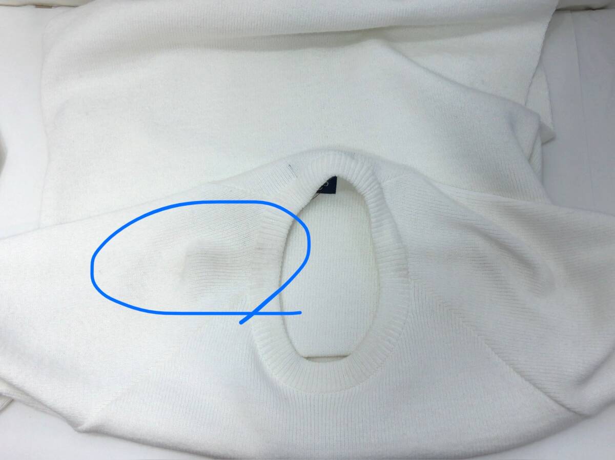 補足:首付近と裾付近に数ミリの小さな汚れあり。肩に若干汚れあり。