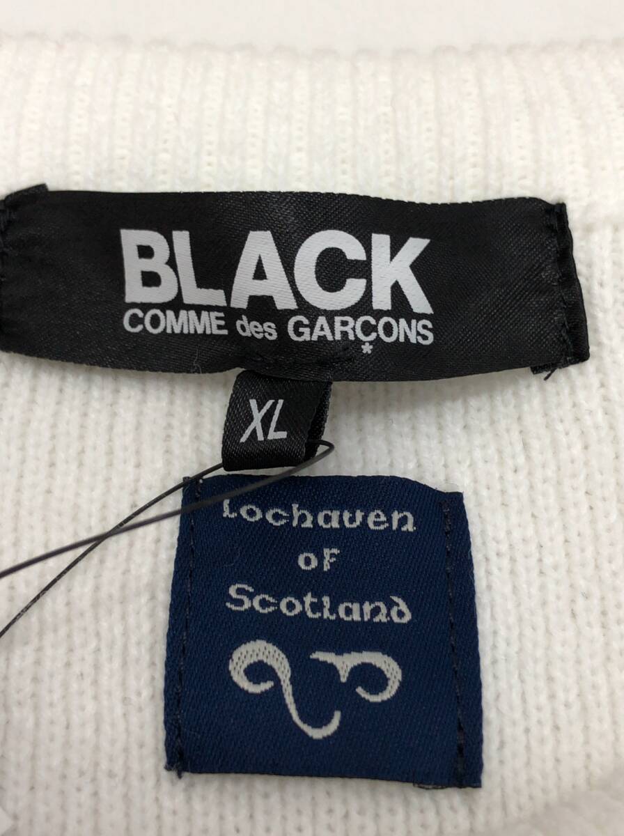 BLACK COMME des GARCONS ニット セーター メンズ XL ホワイト 長袖 クルーネック サイドスリット LOCHAVEN of SCOTLAND SS-172938